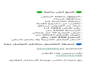 ارض للبيع بالقرب من مدينة الملك عبدالله الاقت