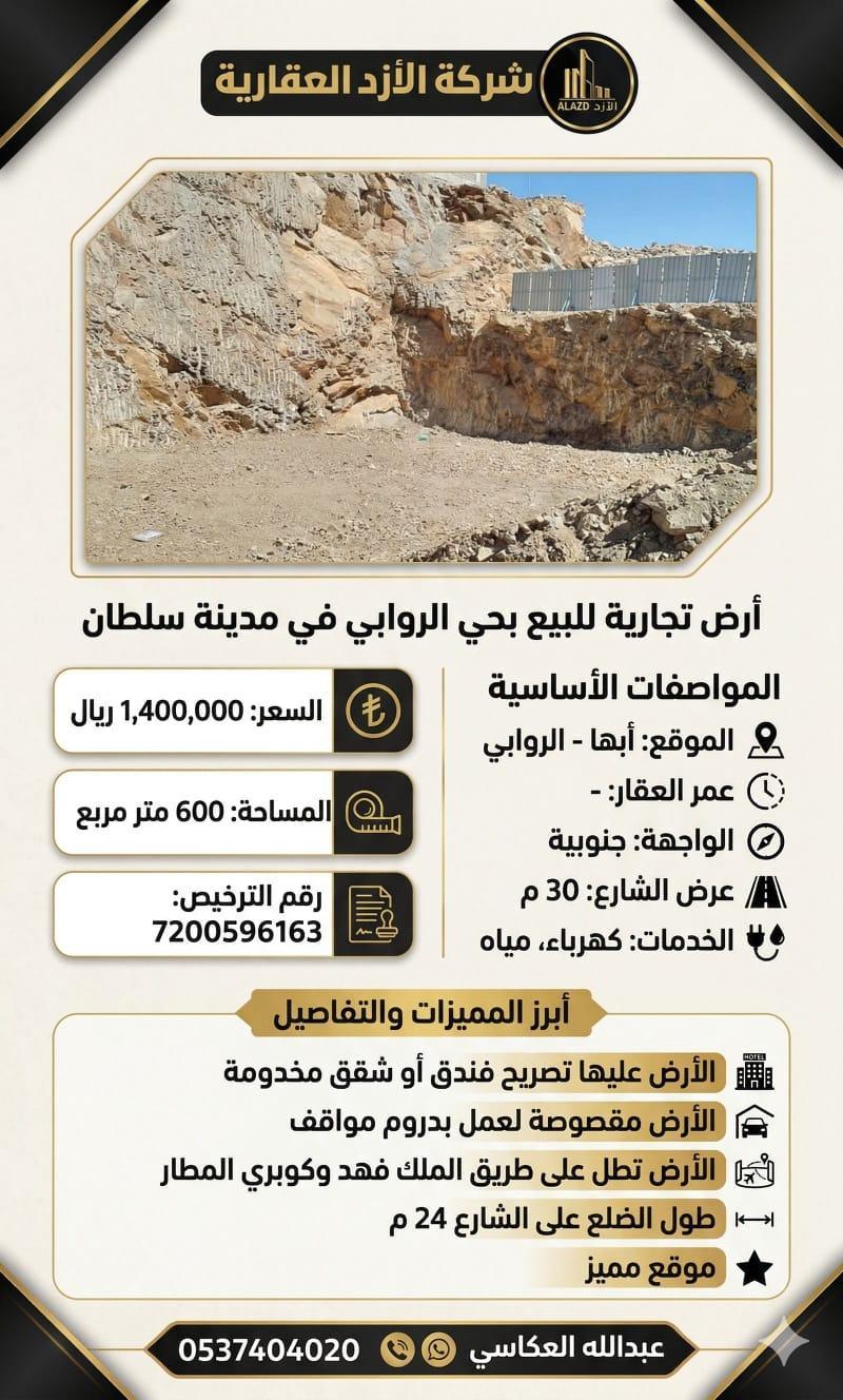 أرض تجارية للبيع بحي الروابي في مدينة سلطان