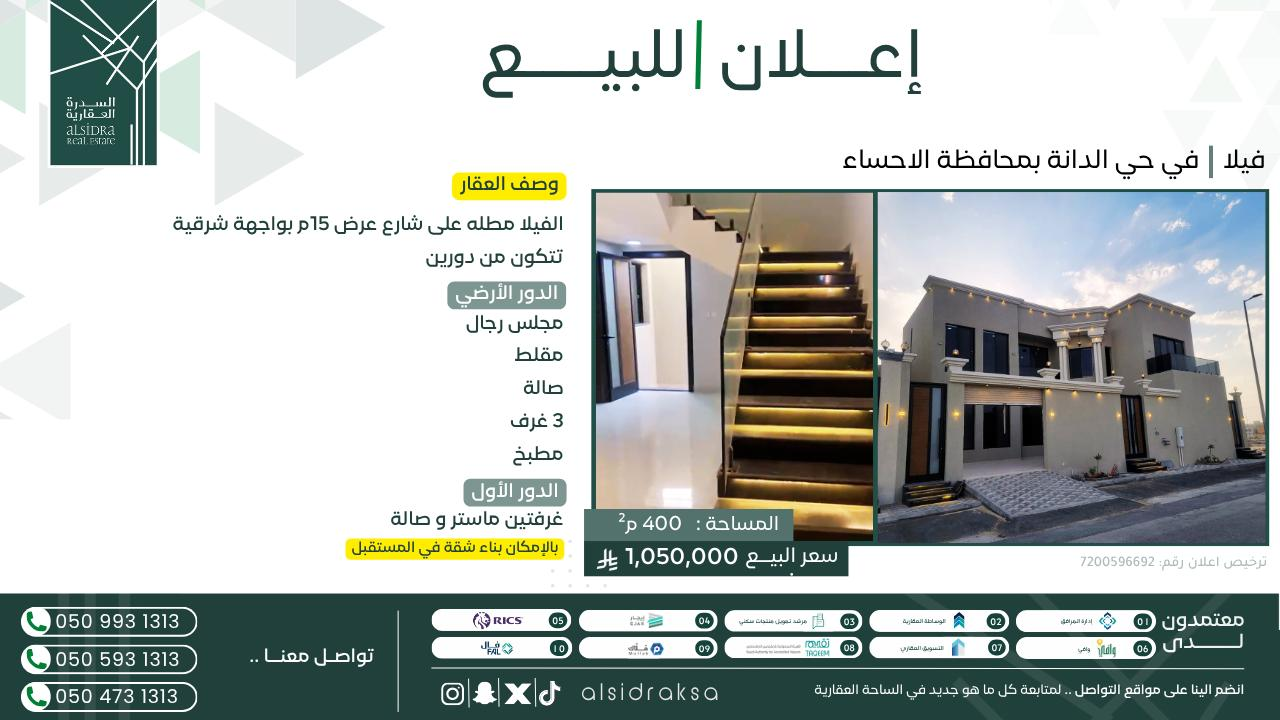 🔹الموقـــــــــــــع : حي الدانة بمحافظة الاحساء