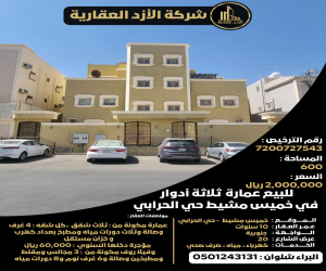 عماره للبيع العمر تقريبا ٢٤ عدد الشقق ٥ مأجره بالكامل بمبلغ ٧٠ الف على واجهتين شرقيه وغربيه ثلاث شقق مداخل خاصه وشقتين بمدخل خاص خمس خزانات خمس عدادات كهرب