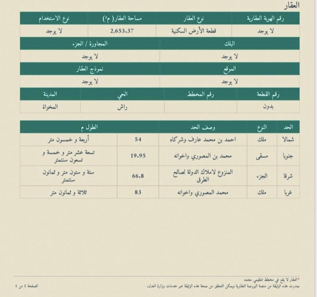 🟡 مساحة الأرض ( 2653 ) متر مربع .