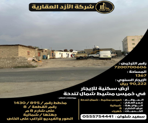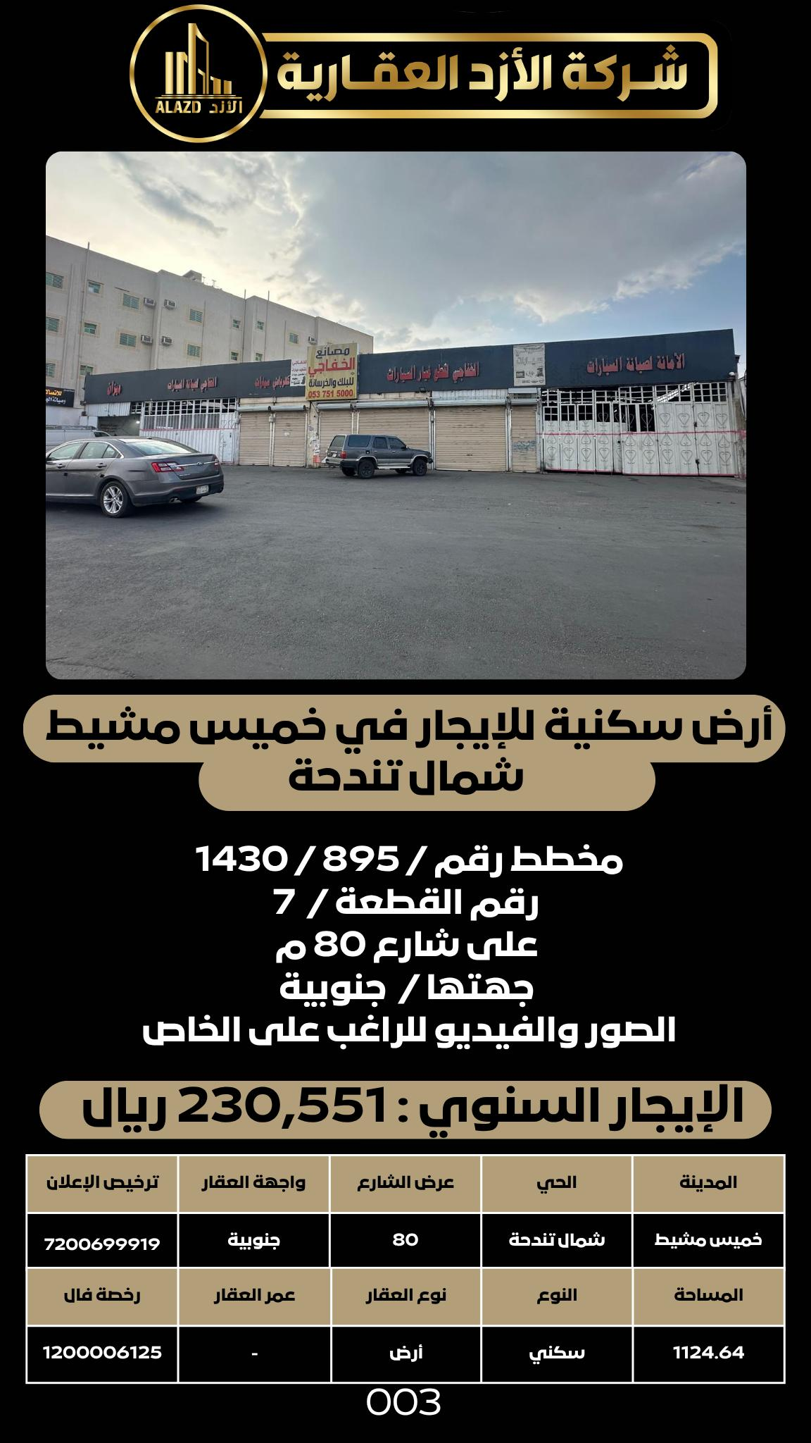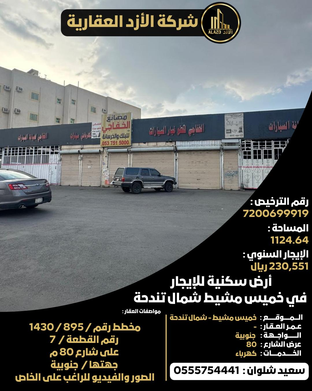 أرض سكنية للإيجار في خميس مشيط شمال تندحة