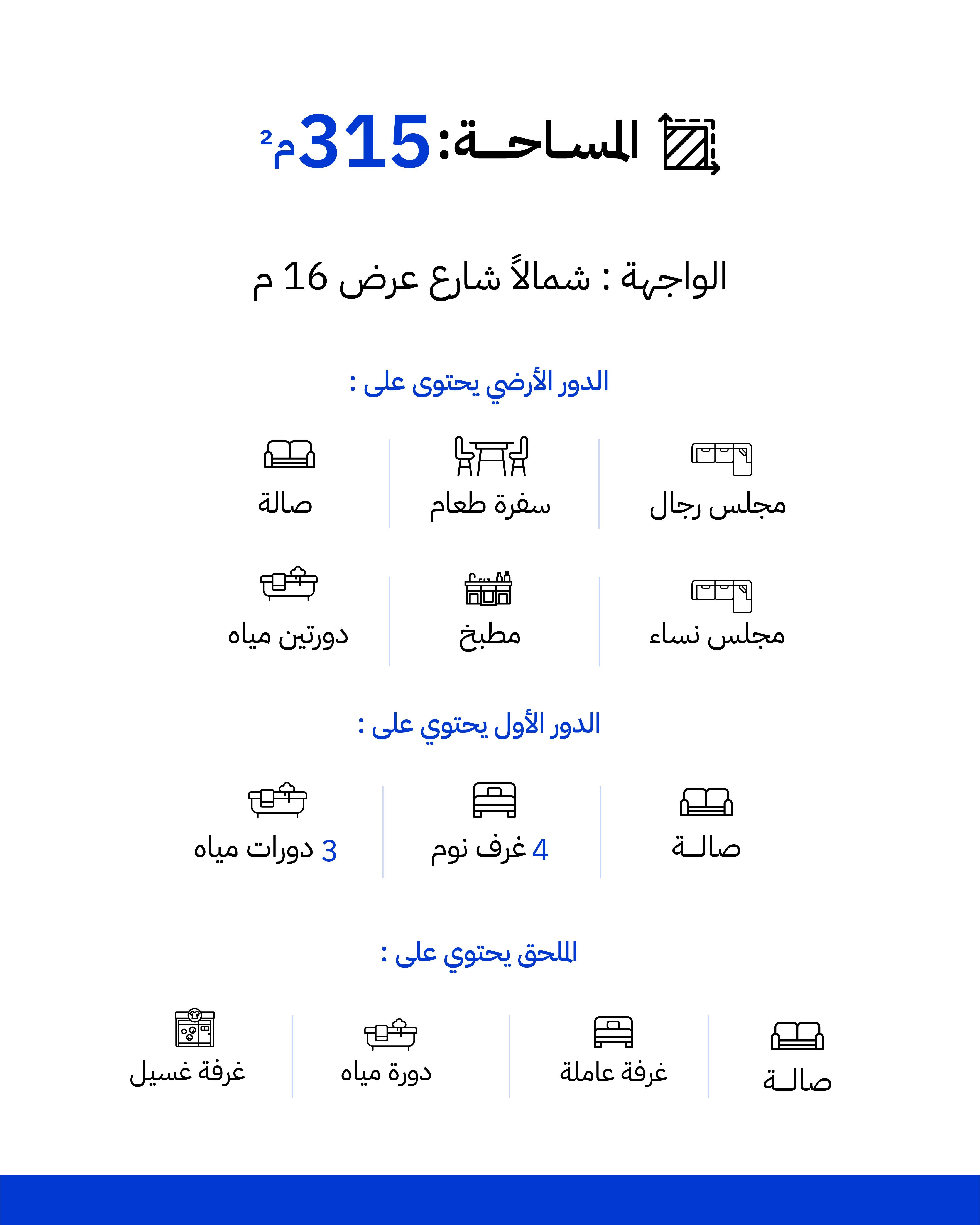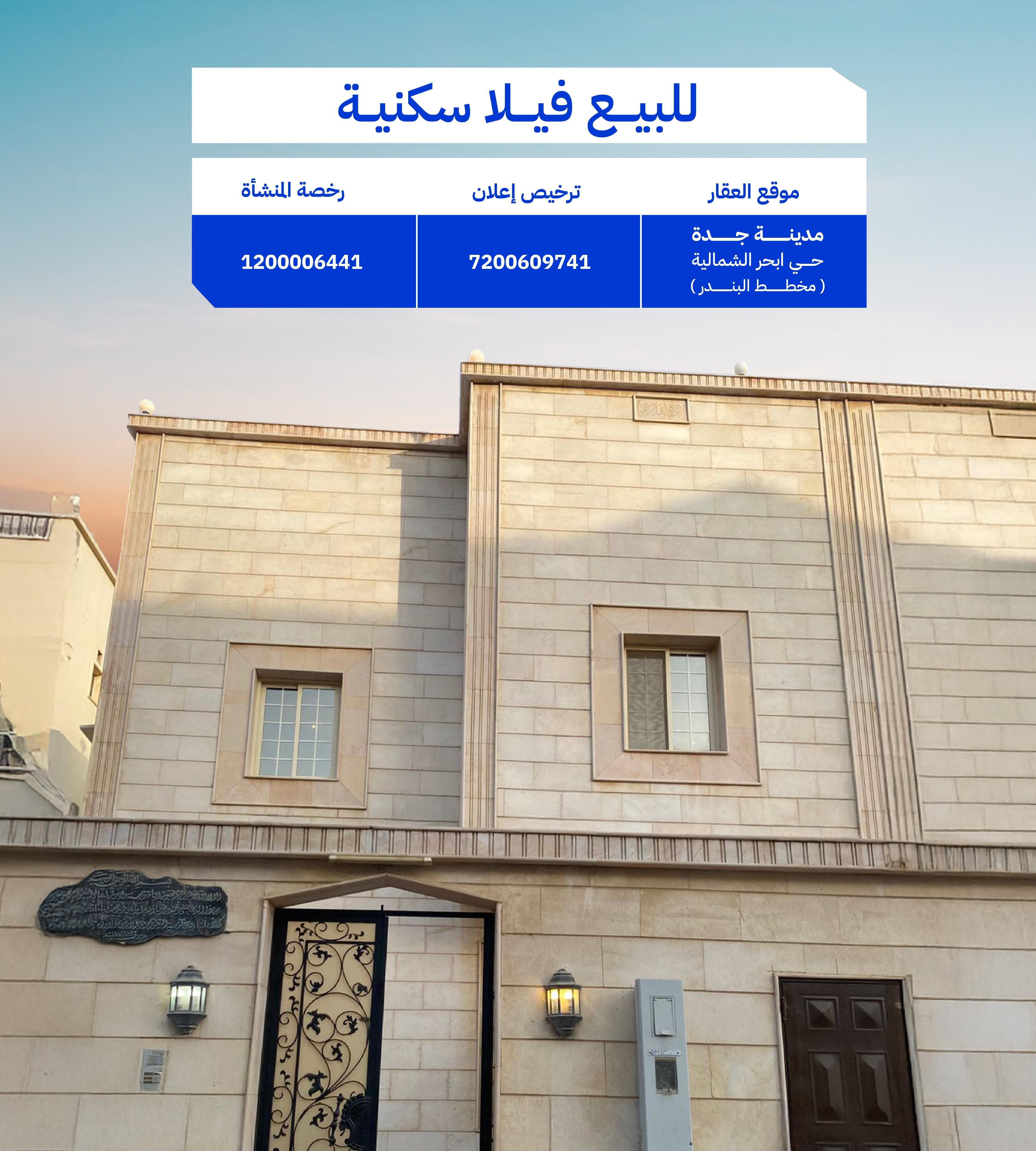 التفاصيل 💎 فيلا فاخرة للبيع في أبحر الشمالية حي البندر سعر البيع 1,650,000 ريال 📍 الموقع: أبحر الشمالية - حي البندر، جدة 🏡 المساحة: 315 🧭 الواجهة: شمالية | عرض الشارع: 15 متر 📅 عمر العقار: 10 سنوات المواصفات: 7 غرف واسعة صالتين مريحتين 6 دورات مياه تصميم فاخر وتشطيبات ذات جودة عالية موقع حيوي قريب من الخدمات والمدارس والأسواق مميزات الموقع: حي هادئ وراقي قرب الكورنيش والشاطئ في أبحر الشمالية سهولة الوصول إلى الطرق الرئيسية 🌟 فرصة ذهبية للتملك والسكن والاستثمار للمزيد التواصل معنا الموقع على الخريطة مع الموقع حسب الصك: حي ابحر الشمالية بمدينة جدة معلومات العقار حسب الرخصة نوع العقار : Villa مساحة العقار : 315 عرض الشارع : 16 رقم المخطط : 182 ج س واجهة العقار : Northern خدمات العقار : Electricity, Waters, Sanitation عمر العقار : Ten Year عدد الغرف : 7 حدود وأطوال العقار نوع الحد الشمالي : شارع وصف الحد الشمالي : عرض 16 م طول الحد الشمالي : عشرة متر و خمسون سنتمتر نوع الحد الشرقي : قطعة وصف الحد الشرقي : رقم 259 طول الحد الشرقي : ثلاثون متر نوع الحد الغربي : قطعة وصف الحد الغربي : رقم 261ب طول الحد الغربي : ثلاثون متر نوع الحد الجنوبي : جزء من وصف الحد الجنوبي : القطعة رقم 260 طول الحد الجنوبي : عشرة متر و خمسون سنتمتر السعر : 1650000