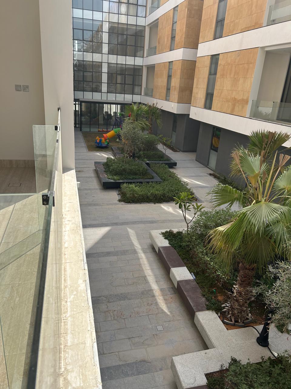 بلكونة بإطلالة على حديقة وألعاب أطفال
