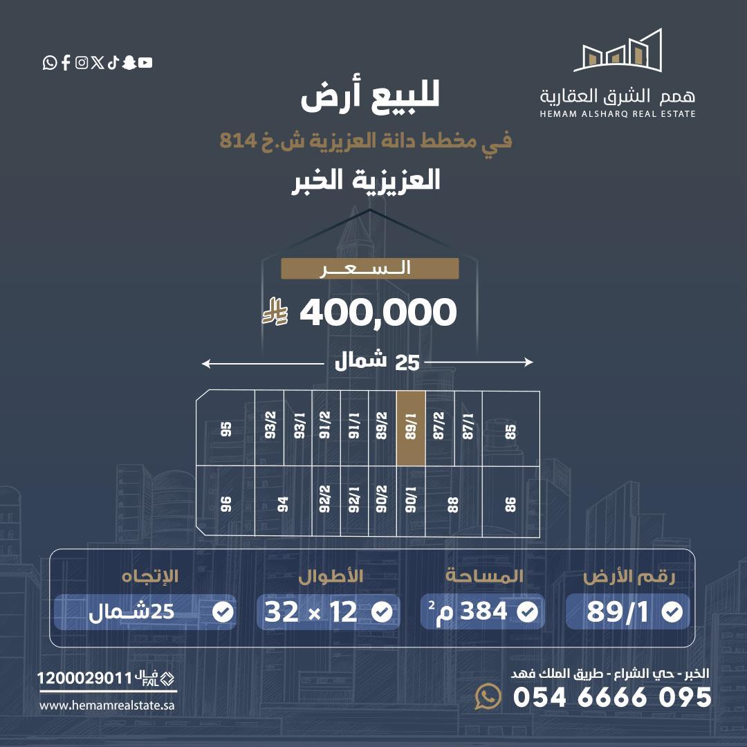 🏡 للبيــع — أنصاف أراضي في مخطط الأمواج (دانة العزيزية) رقم 814