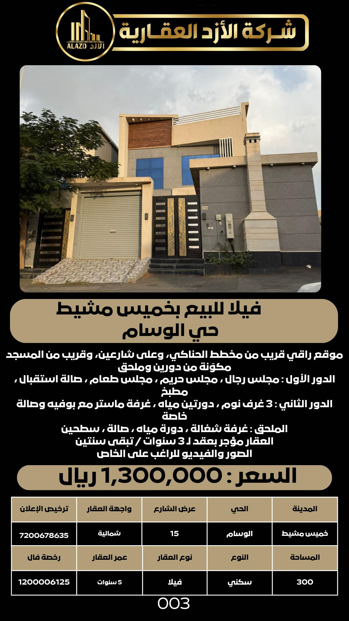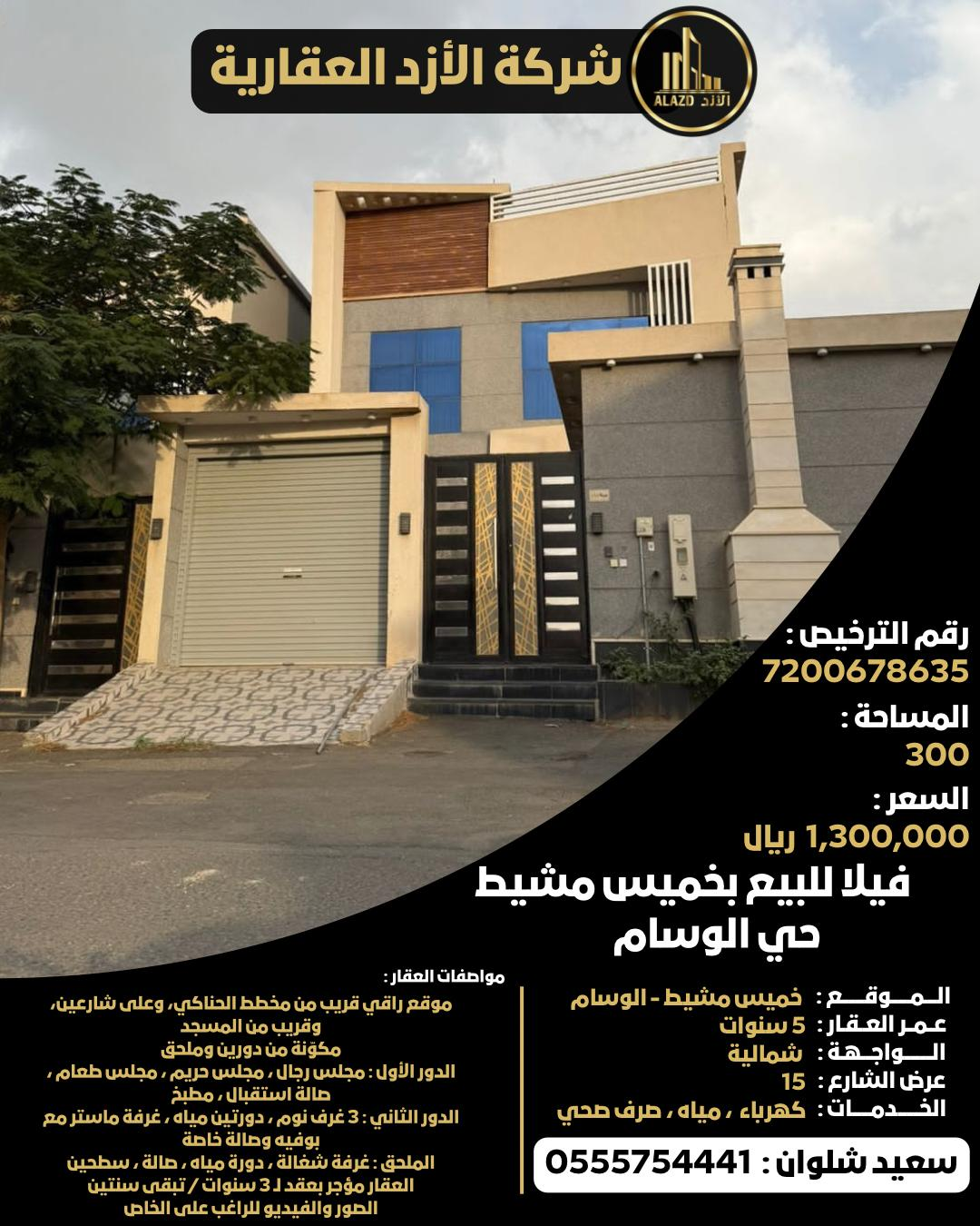 الدور الثاني : 3 غرف نوم ، دورتين مياه ، غرفة ماستر مع بوفيه وصالة خاصة