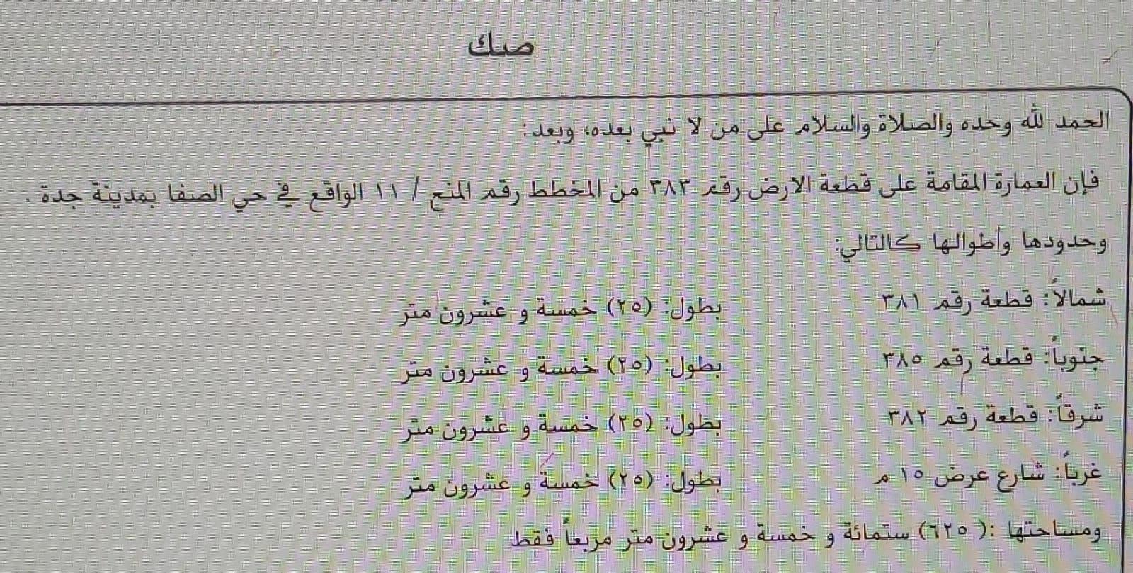 ارض في الصفا منطقه عمائر ٦ ادوارمساحه 625 متر شارع15 ماطوالها : 25 في 25مطلوب 3800000 ثلاثه مليون وثمانمائه الف