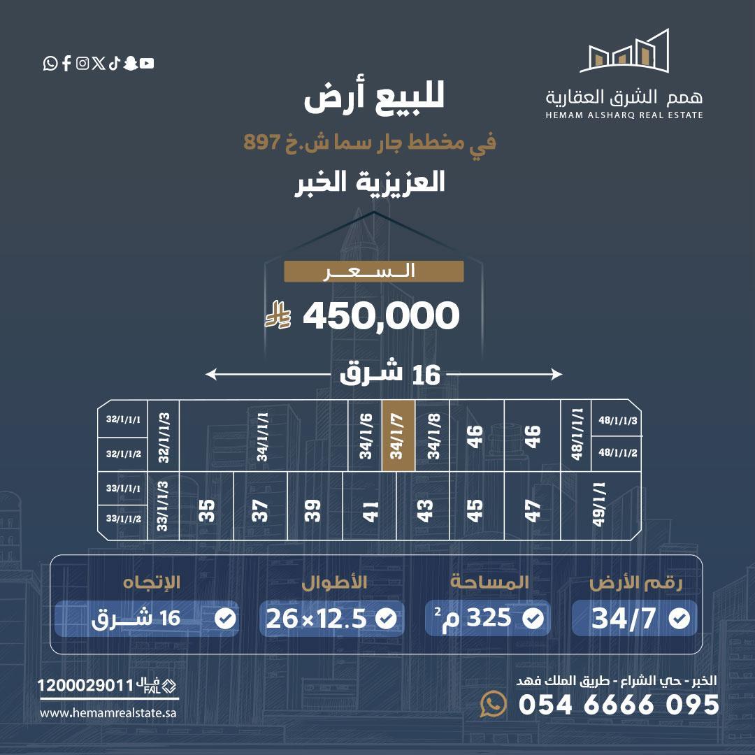 🔹 للبيع نص أرض بمخطط جار سما – العزيزية الخبر (ش خ 897)