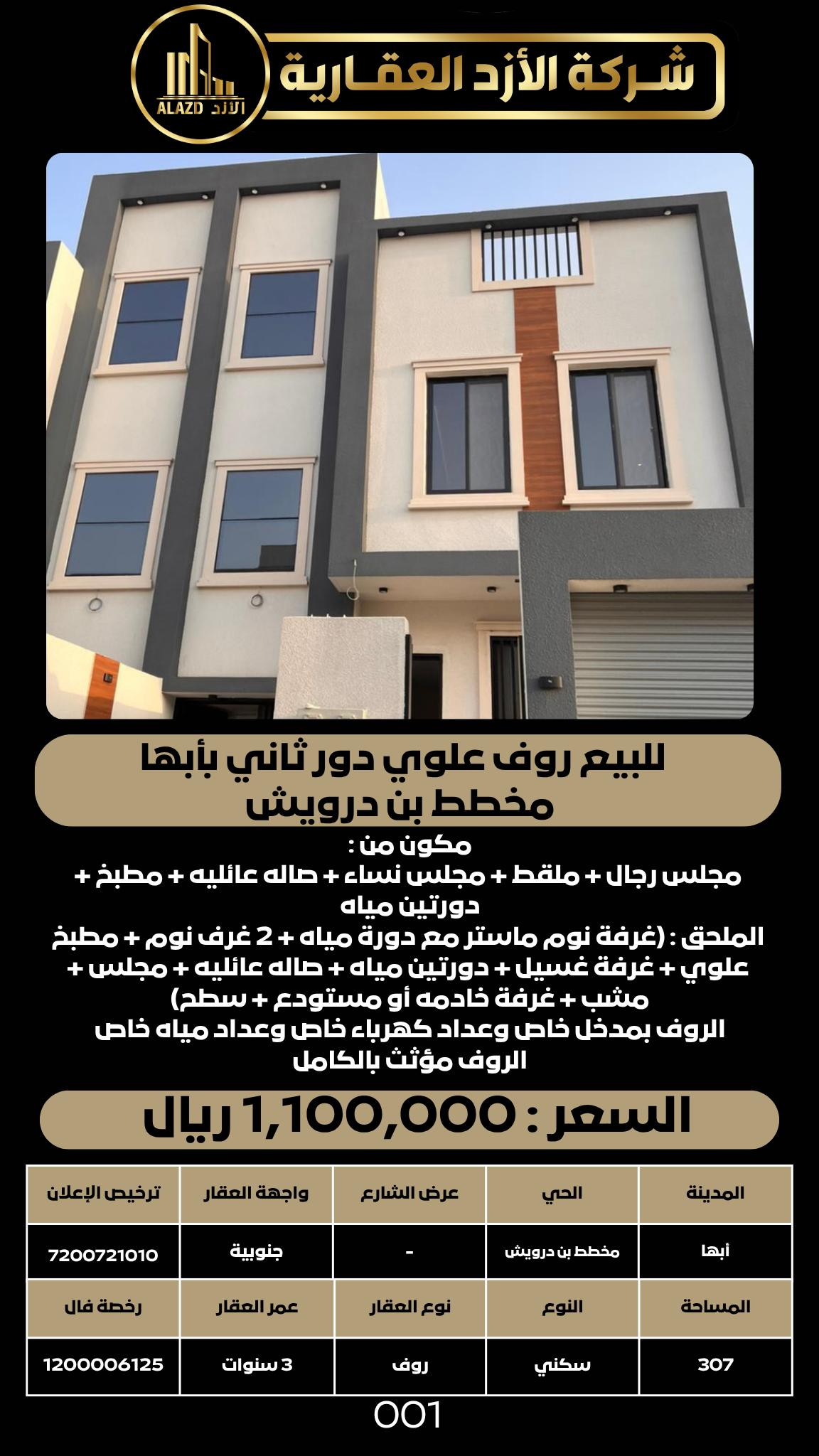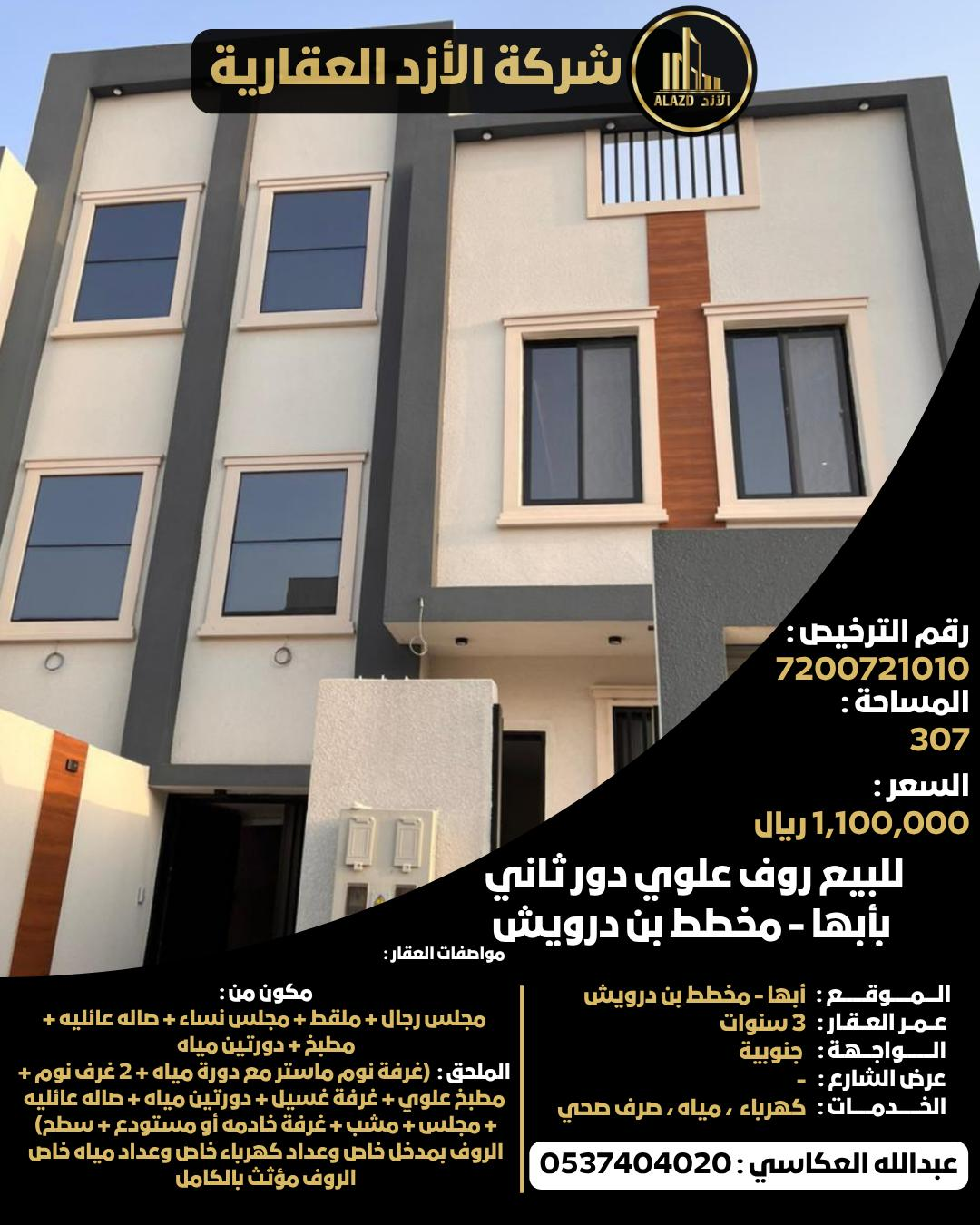 للبيع روف علوي دور ثاني بأبها - مخطط بن درويش
