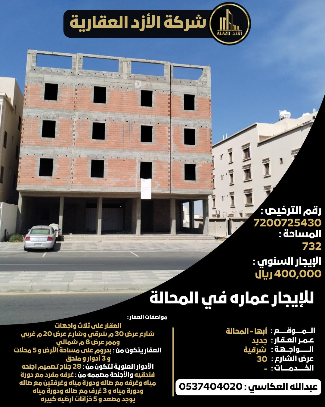 للإيجار عماره في المحالة