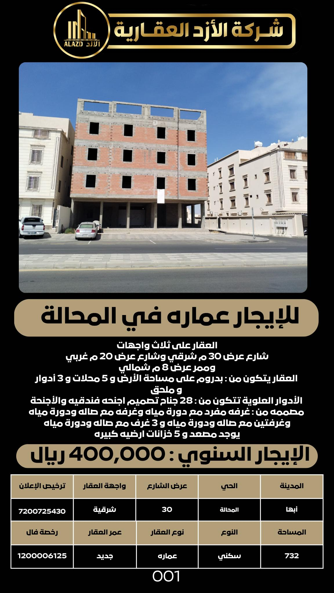 الإيجار السنوي : 400,000 ريال