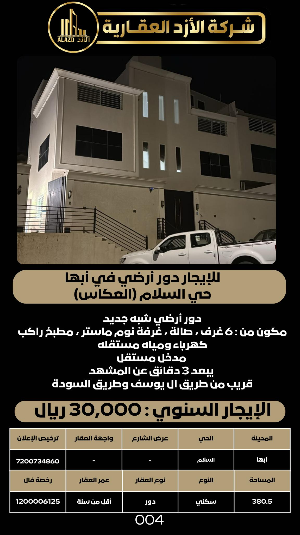 للإيجار دور أرضي في أبها حي السلام (العكاس)