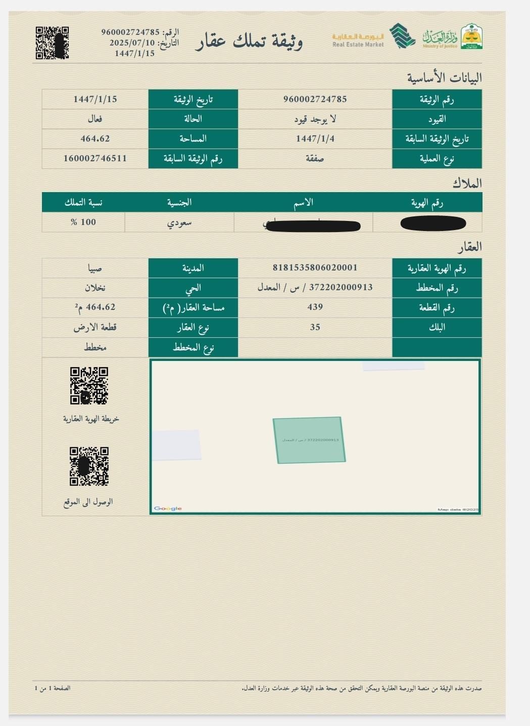 للبيع ارض في نخلان صك الكتروني ورخصه بناء تقبل البنك واستخراج قرض عقاري وسيوله للعميل رقم القطعة439 بلوك35