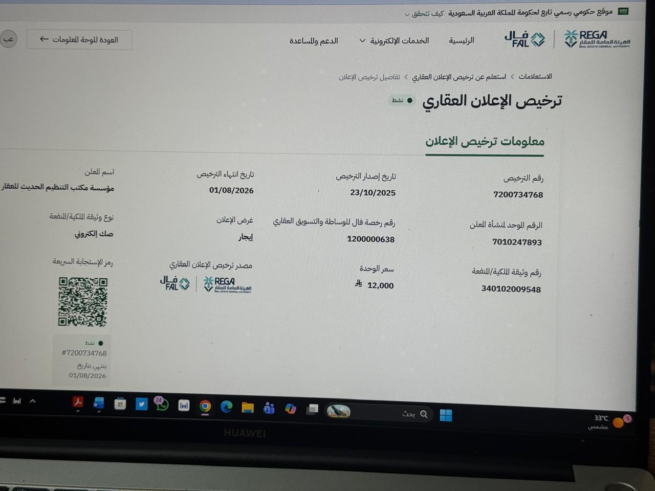محل تجاري مساحته 27 متر مميزات المجل انه على طريق ام منيع اسماء بنت منيع الانصارية وامام حديقة الملك فهد . يقع بعد العبيري لتأجير السيارات يوجد 1- مكيف سبليت 2- نظام مركزي للكميرات حسب النظام بعدد 3 كميرات 3- مكتب من ايكيا 4- طابعه 5- عدد 2 كرسي من ايكيا 6- المحل مكتمل من جميع النواحي 7- الموقع مزود ب الياف بصرية صاحب الترخيص : مؤسسة مكتب التنظيم الحديث للعقار تاريخ انتهاء رخصة الإعلان : 2026-08-01 ملاحظه - الايجار لايشمل الموجودات مثال ويجب دفع قيمة الكميرات وتركيبها - نأمل مطابقة الموقع على الخريطة مع الموقع حسب الصك الضمانات و مدتها: لايوجد
