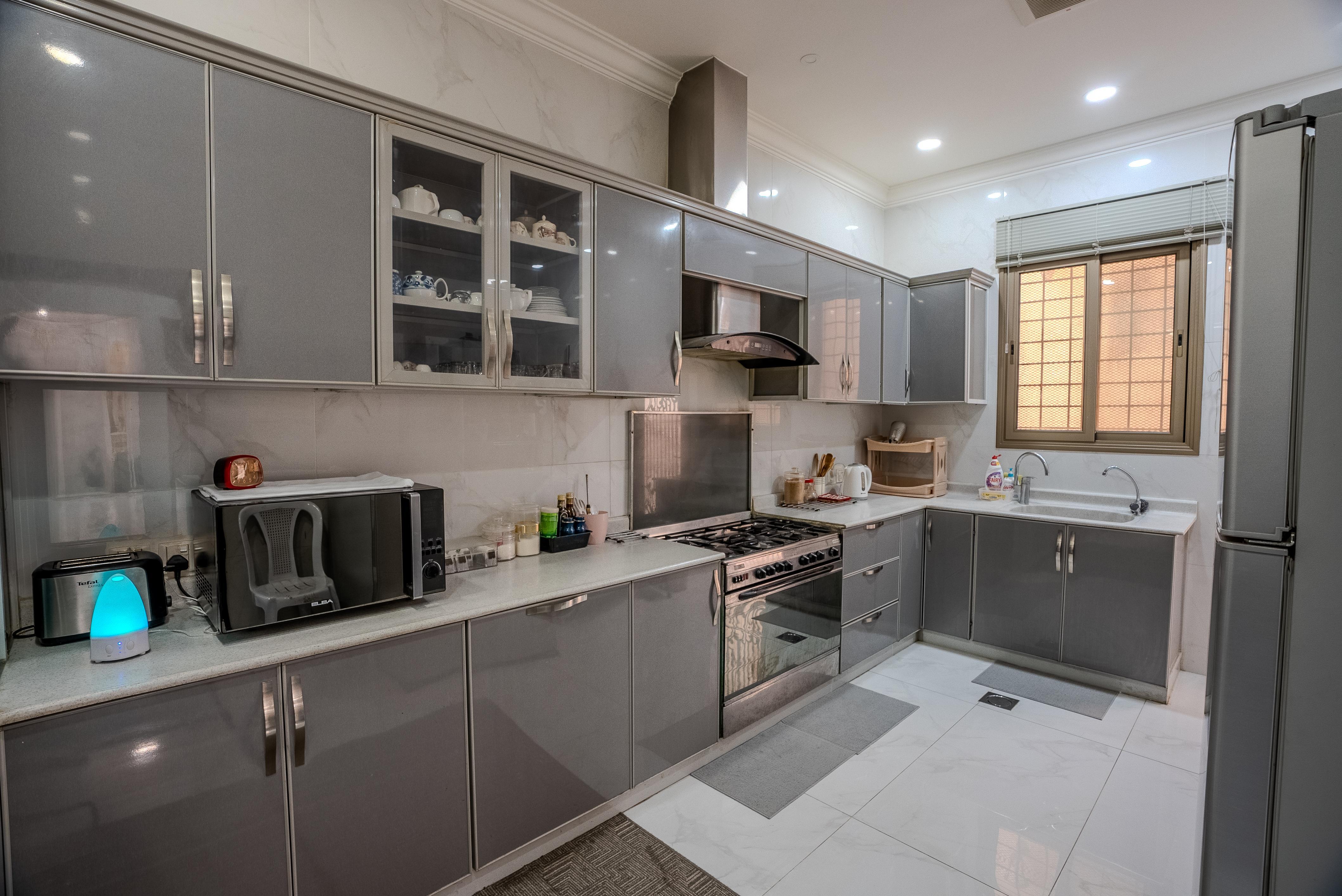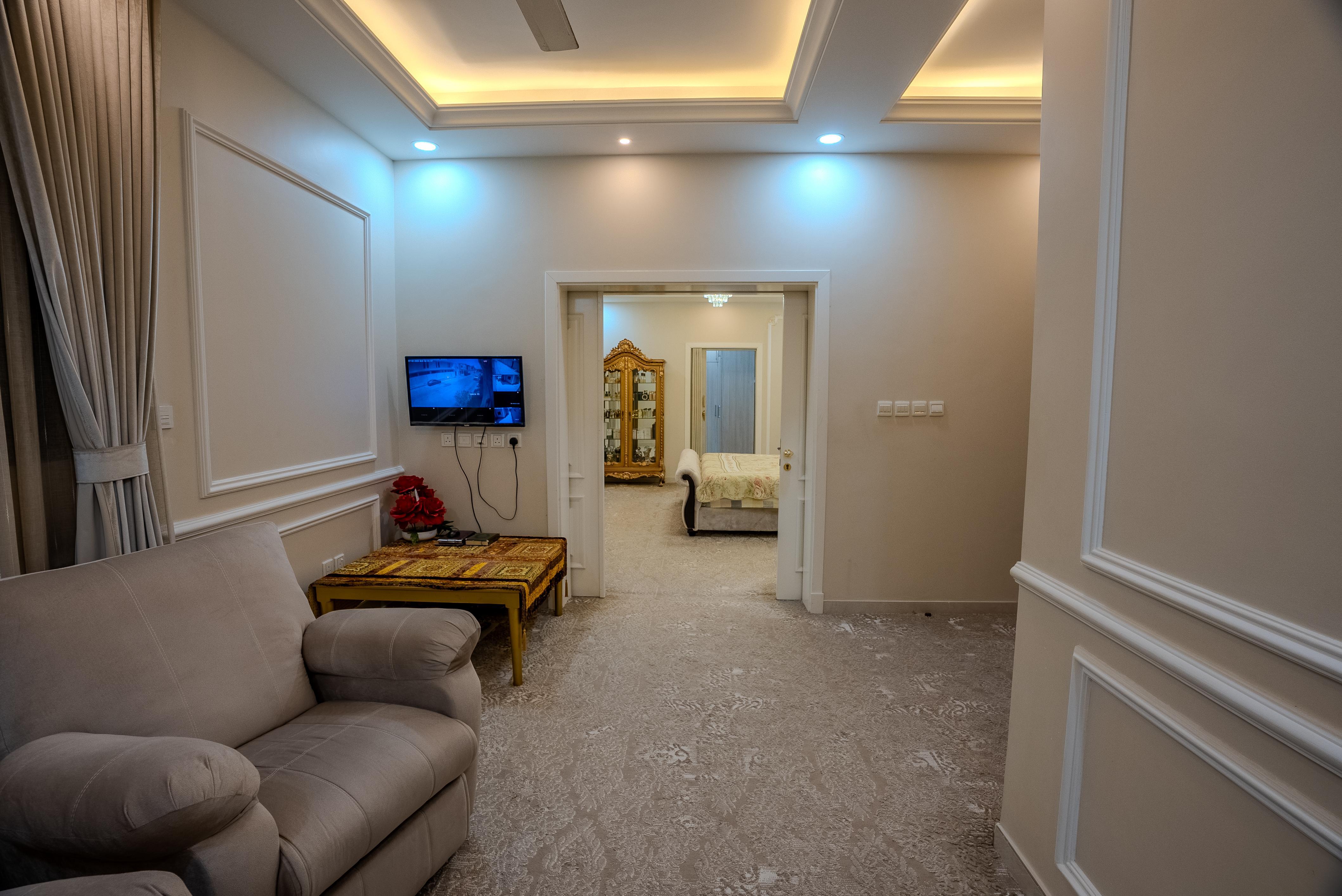 مدخل خاص ومدخل سيارات مع مشب خارجي مكيف ومؤثث كاملا