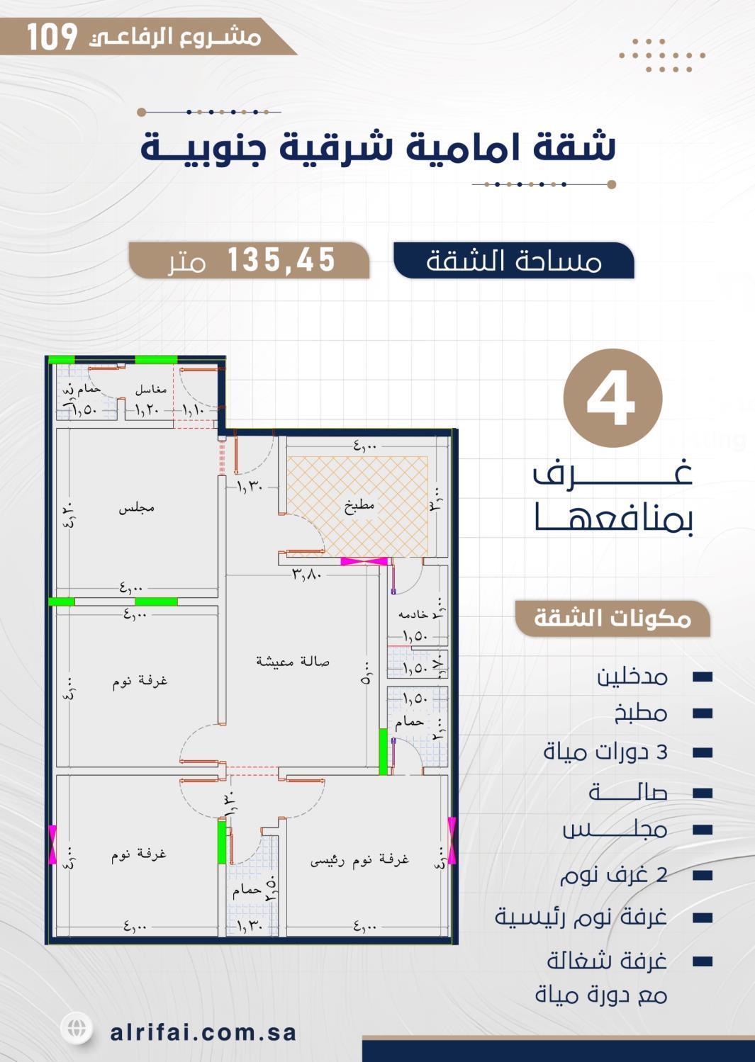 📏 المساحة: 136 متر مربع