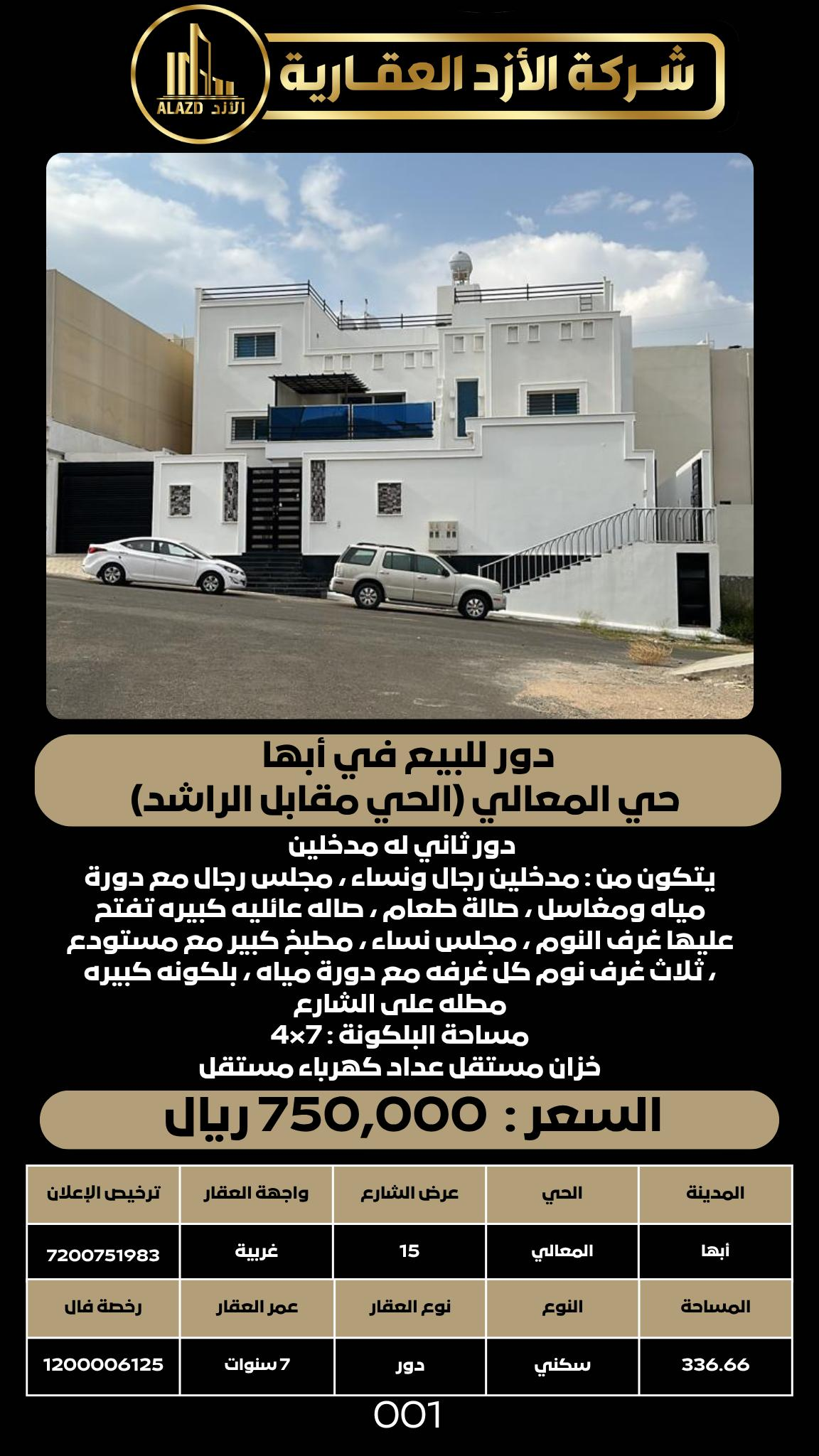 دور للبيع في أبها حي المعالي (الحي مقابل الراشد)