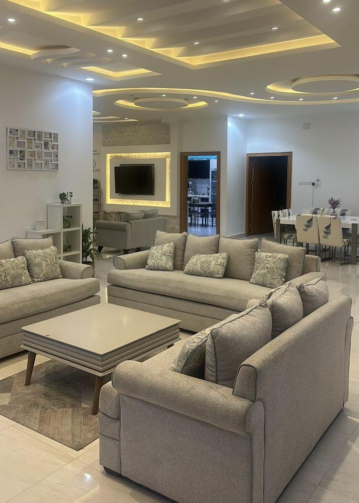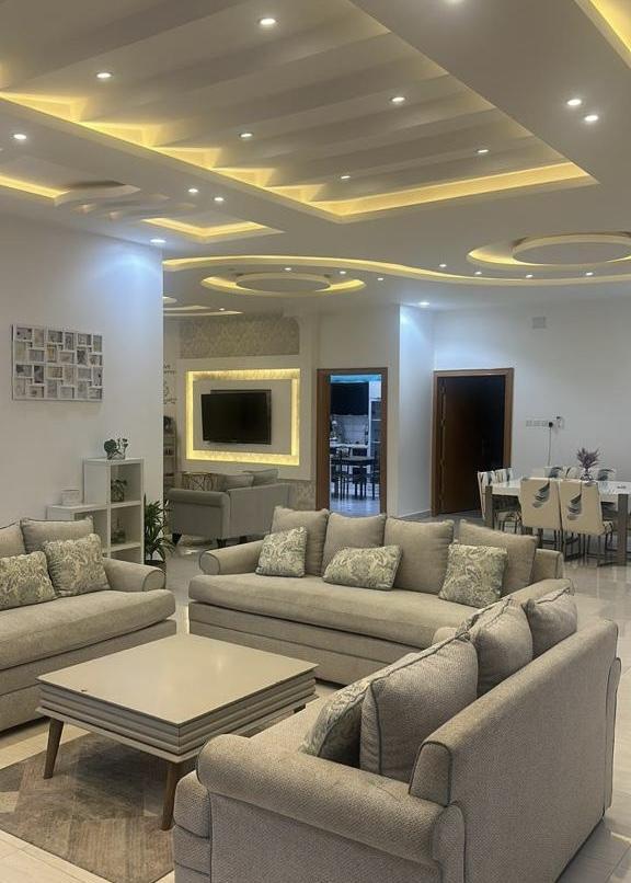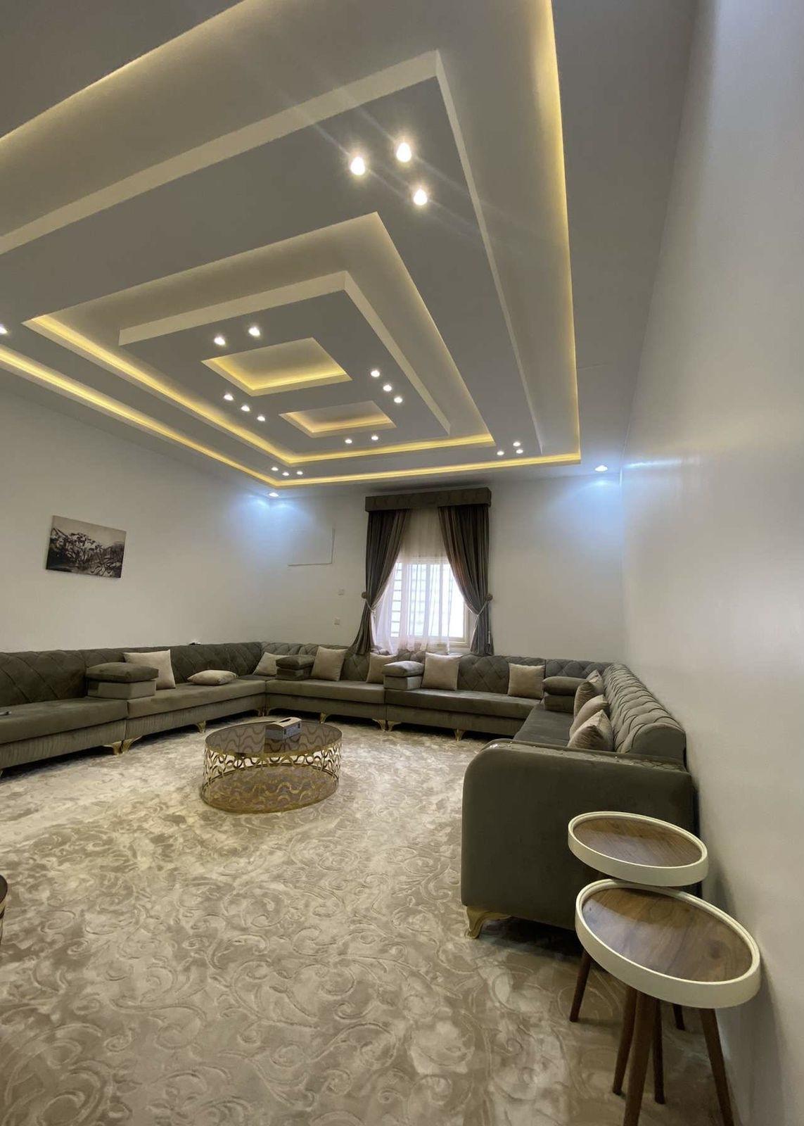 يتكون من : مدخلين رجال ونساء ، مجلس رجال مع دورة مياه ومغاسل ، صالة طعام ، صاله عائليه كبيره تفتح عليها غرف النوم ، مجلس نساء ، مطبخ كبير مع مستودع ، ثلاث غرف نوم كل غرفه مع دورة مياه ، بلكونه كبيره مطله على الشارع