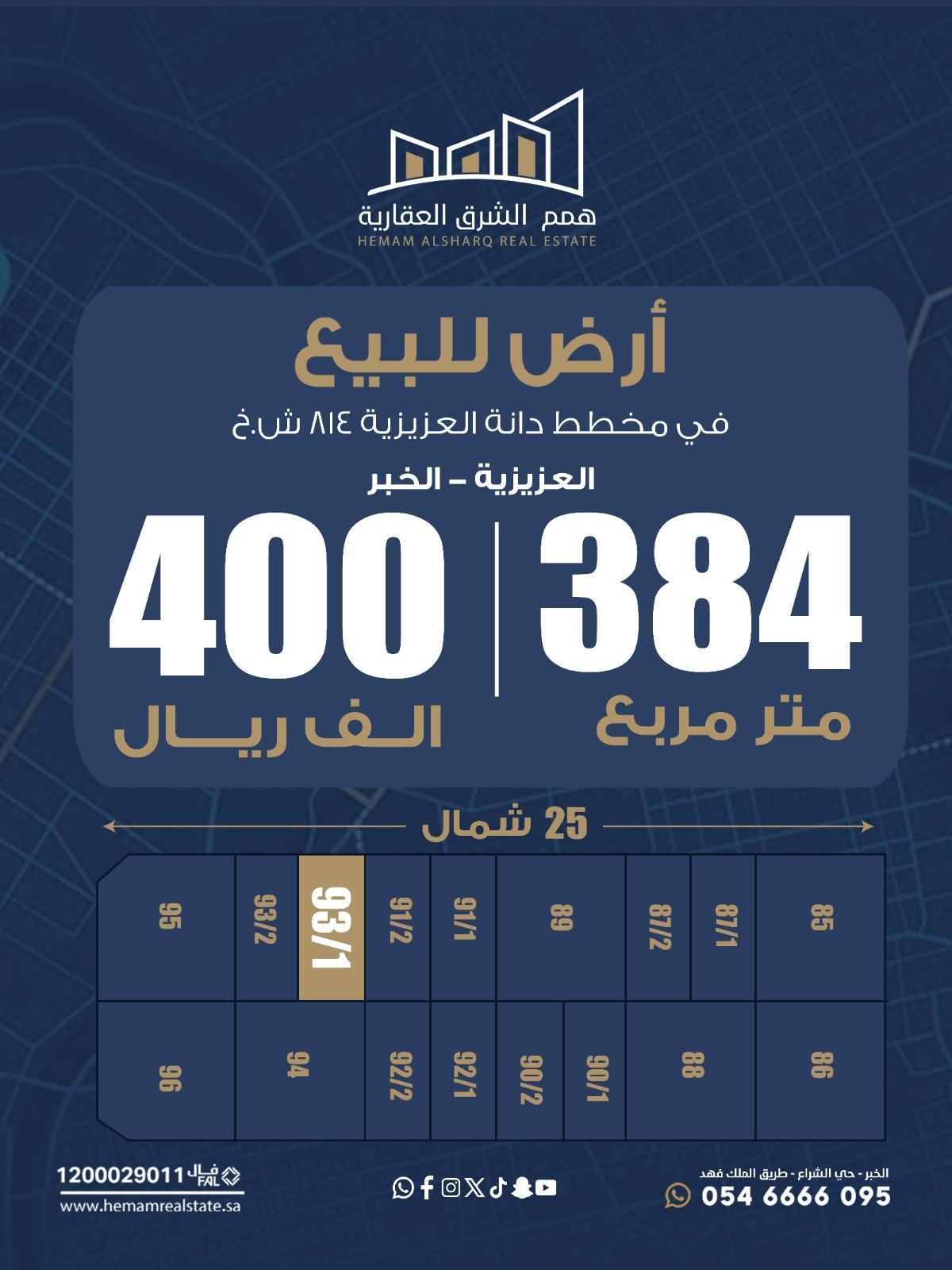 🏡 للبيع نصف أرض بمخطط دانة العزيزية – الخبر