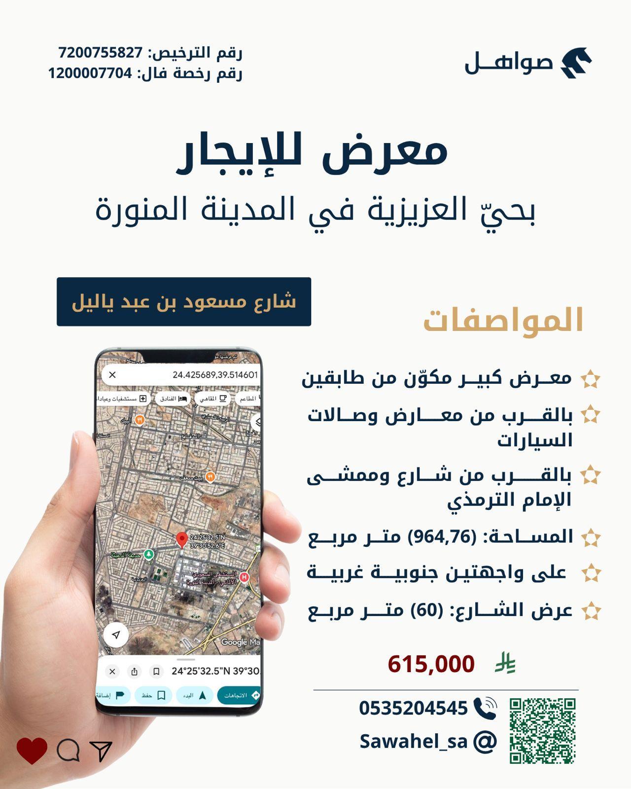 معرض للإيجار بحيّ العزيزية بالمدينة المنورة.