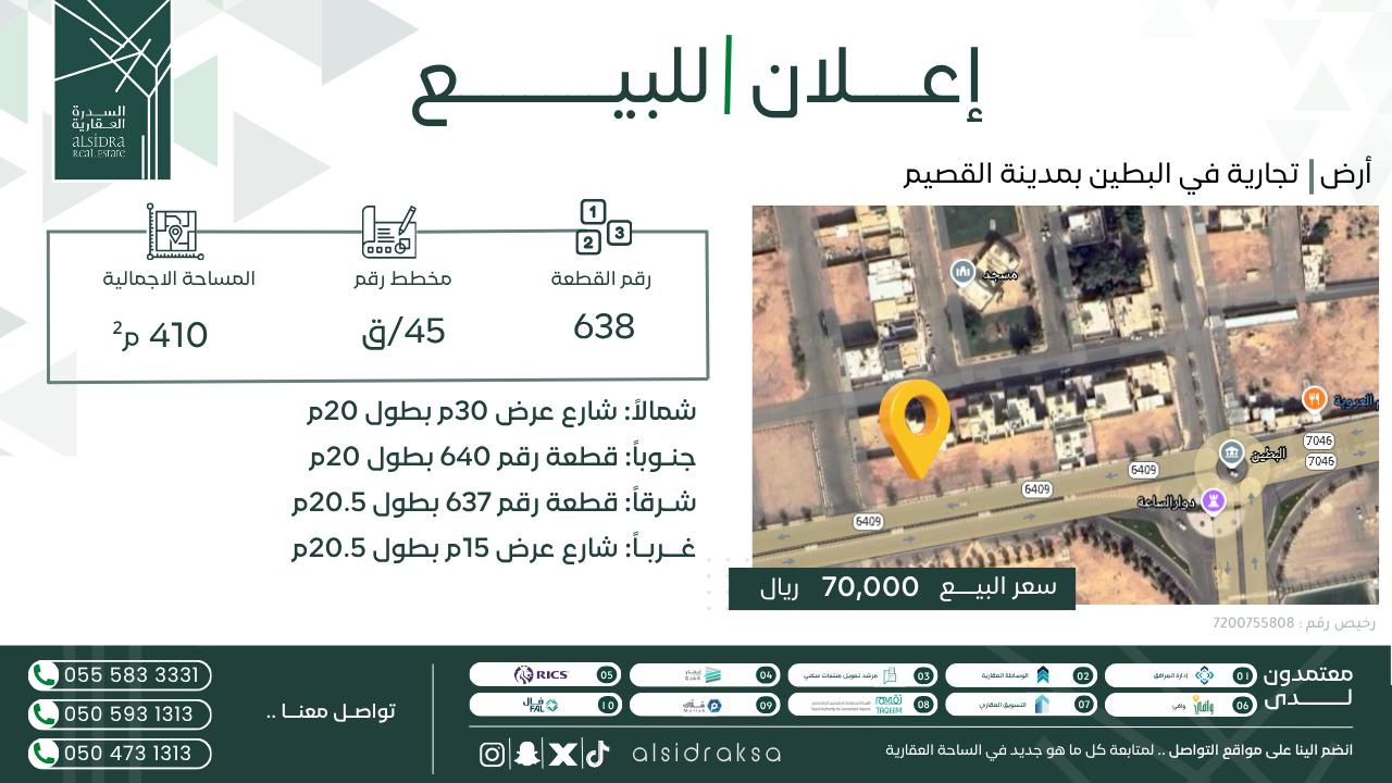 قطعة الارض رقم 638 من المخطط رقم 45 / ق مركز البطين .