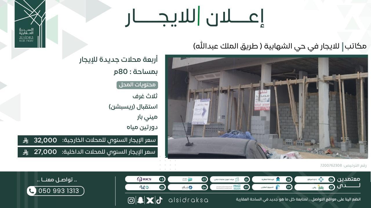 🔹 سعر الإيجار السنوي للمحلات الداخلية : سبعة وعشرون الف ( 27,000)