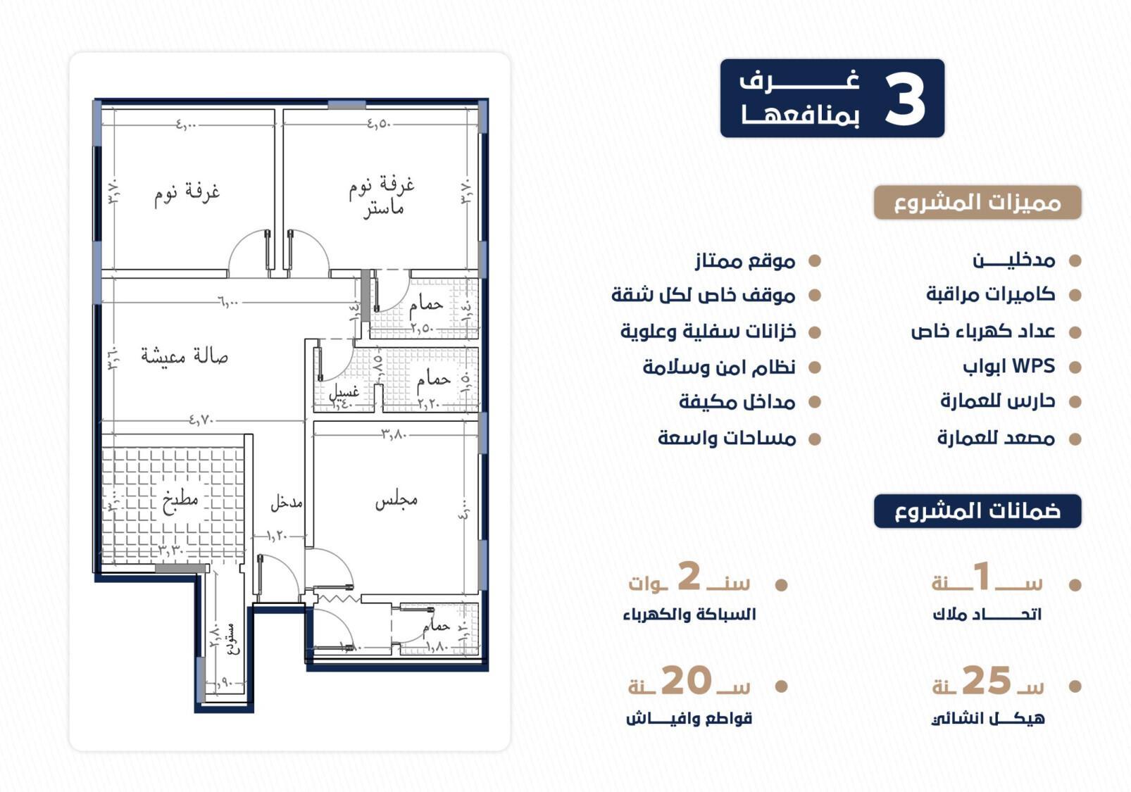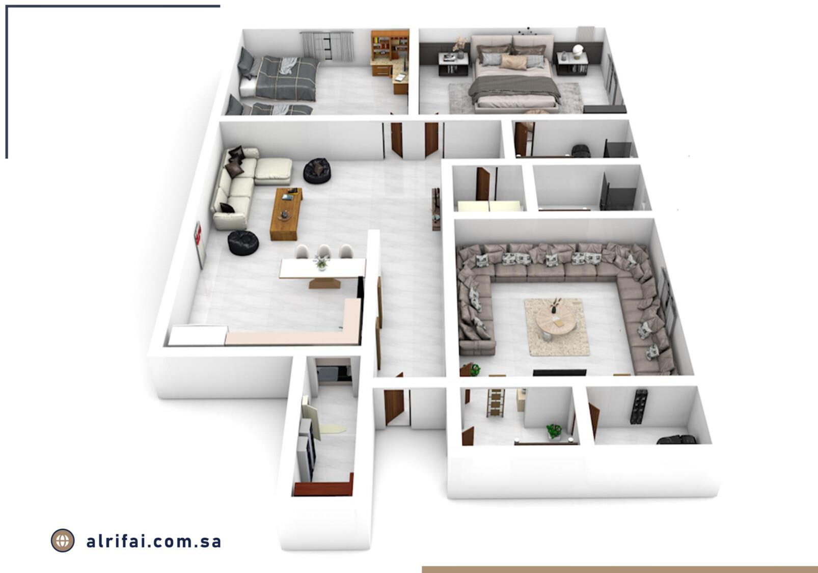 3غرف+ 3دورات مياة + صالة + مطيخ