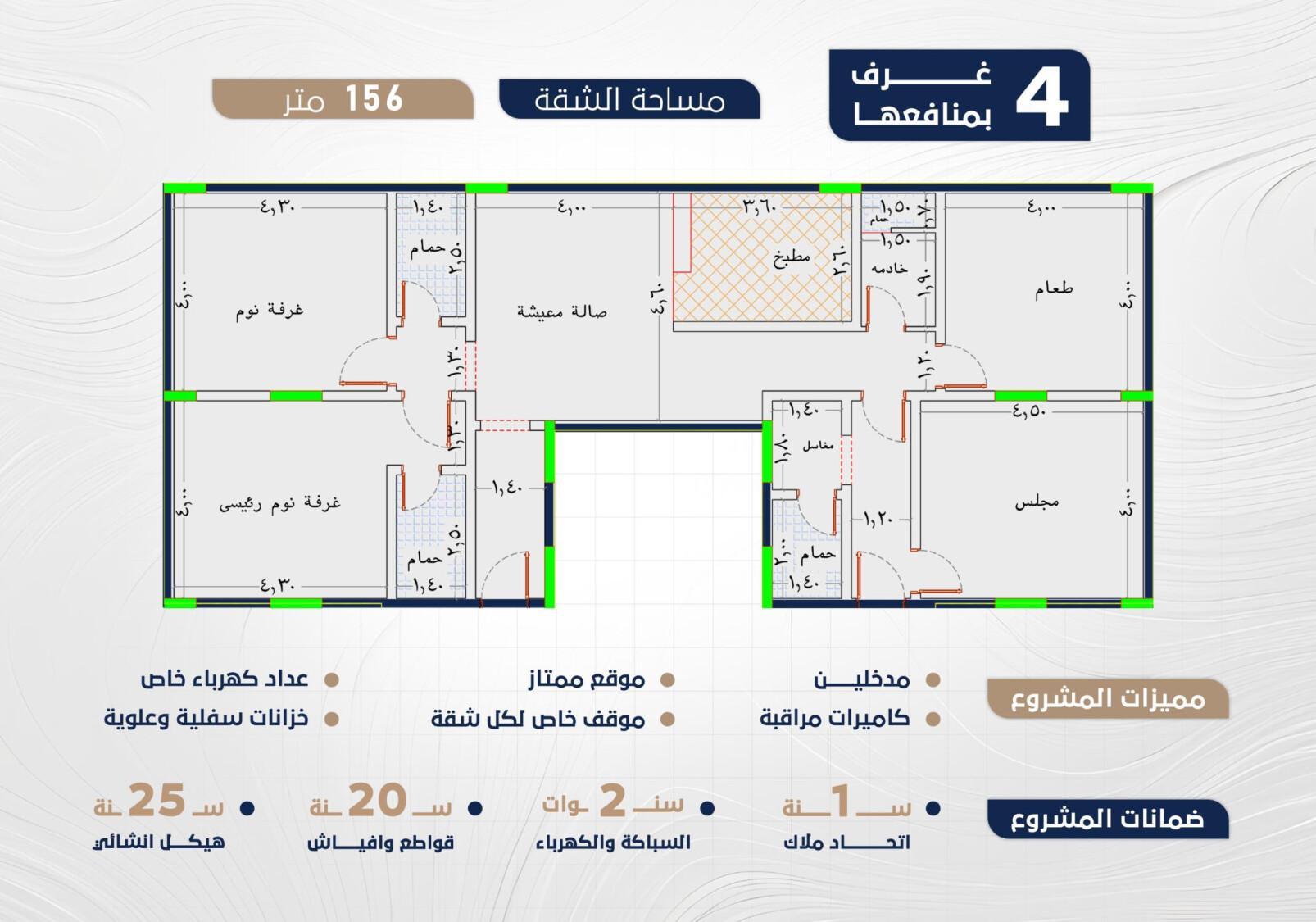 شقه 4 غرف و3دورات مياه ومطبخ وصاله كبيره