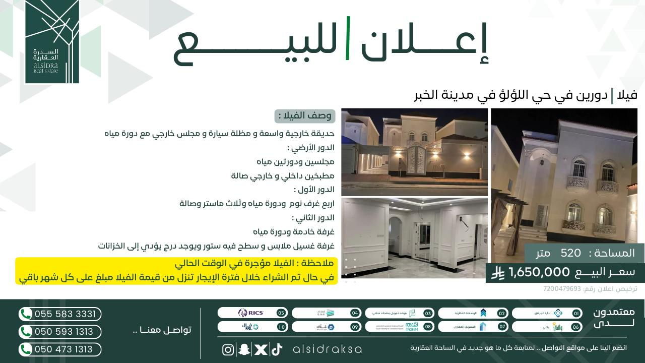 للاطلاع على المزيد من العروض العقارية، يسعدنا تواصلكم معنا.
