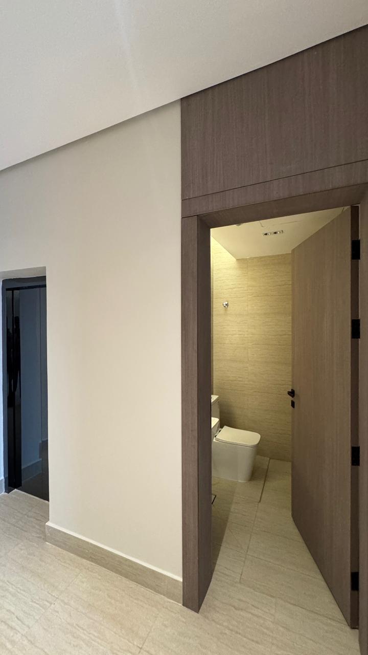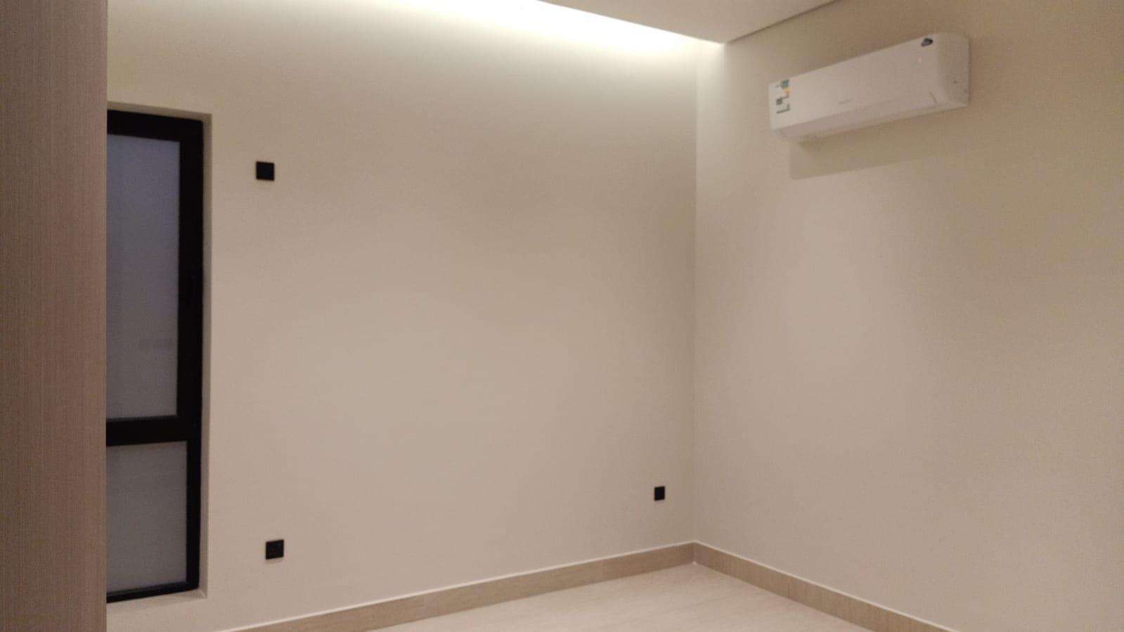 * غرفة ماستر رئيسية مع مكان جلسة وغرفة ملابس و دورة مياة كبيرة ( التكييف مخفي حار بارد من شركة فوجي )