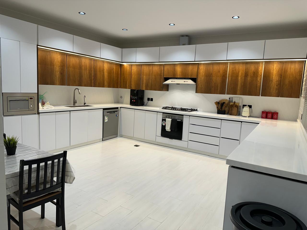 🔼 الدور العلوي : صالة + الغرفة الرئيسية ماستر بغرفة ملابس + 3 غرف نوم ومخزن ودورة مياه + غرفة غسيل. المطبخ راكب بتكلفة قرابة ٣٠ ألف.