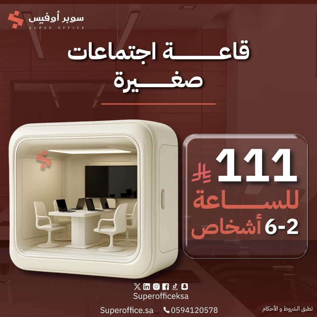 🔹 قاعة اجتماعات صغيرة (2–6 أشخاص):