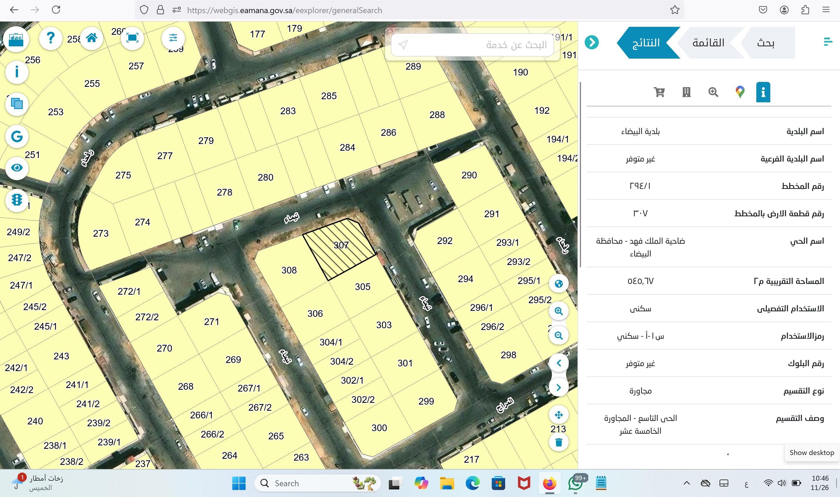 جنوباً: قطعة رقم 305 بطول جنوباً: 25 متر