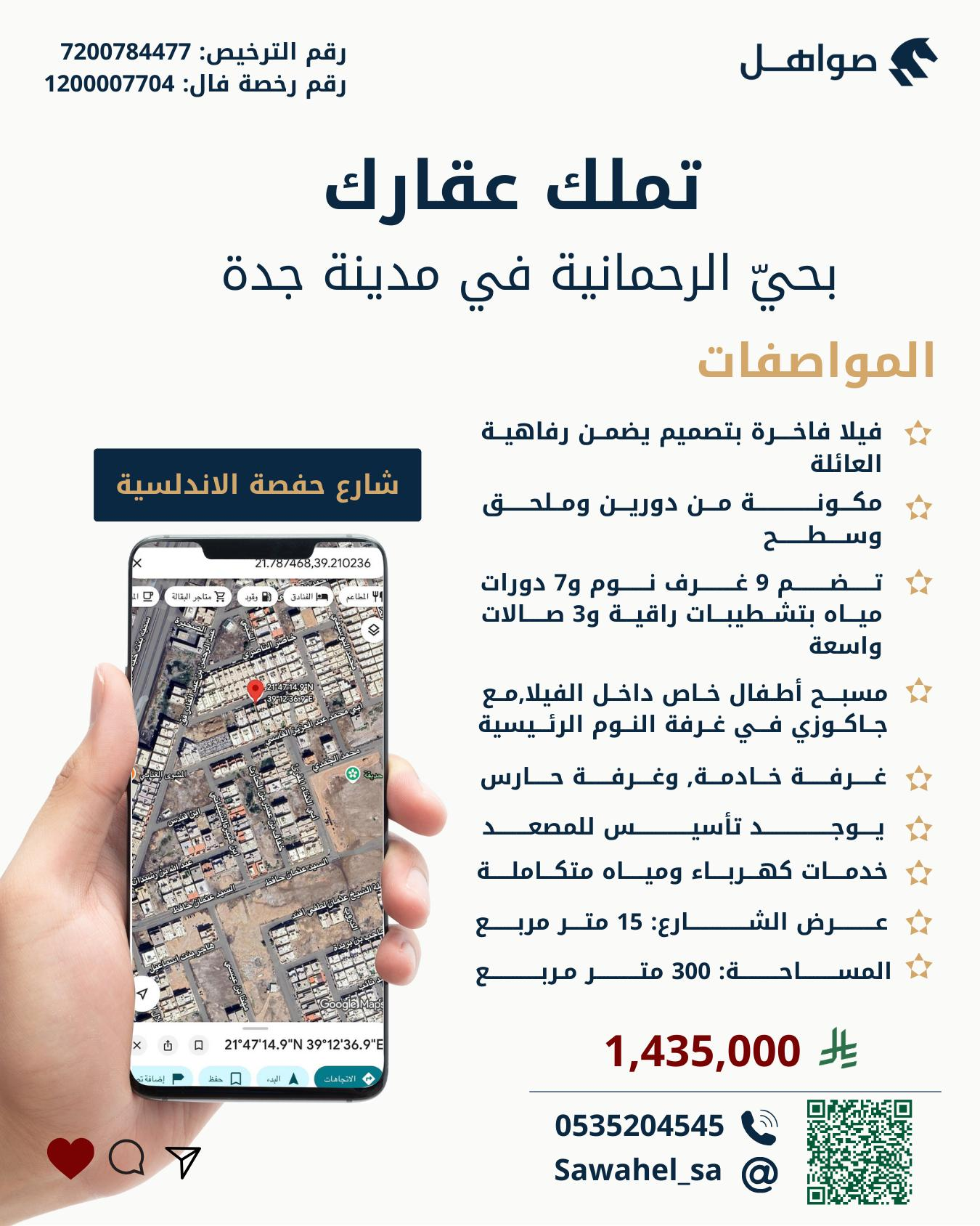 فيلا للبيع بحيّ الرحمانية بمدينة جدة