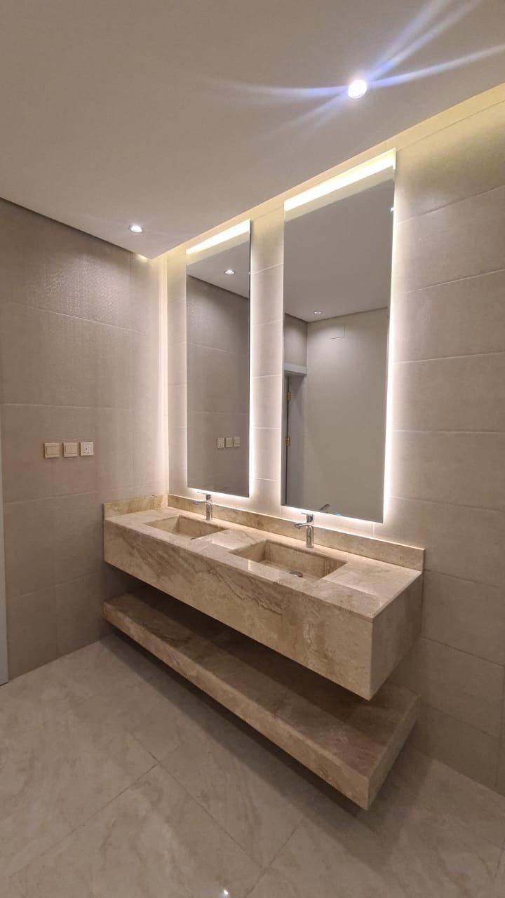 جميع أدوات التشطيب من أفضل وأغلى وأجود الموجود جبس بورد سيراميك أسباني دهانات جوتن أدوات تأسيس السباكه نبروا مثبت بفواتير كذلك أدوات السباكة الخارجية ألماني وإيطالي كذلك كل تمديدات الكهرباء من شركة الفنار التأسيس الداخلي والخارجي جميعه من الفنار مثبت بفواتير وبضمان 25 عام.