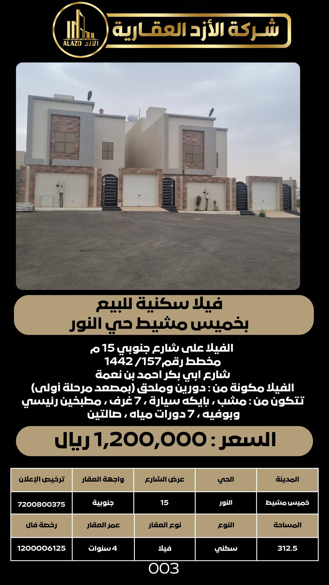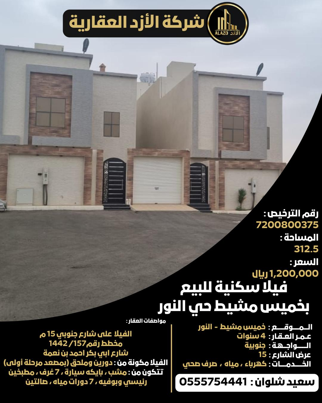 فيلا سكنية للبيع بخميس مشيط حي النور