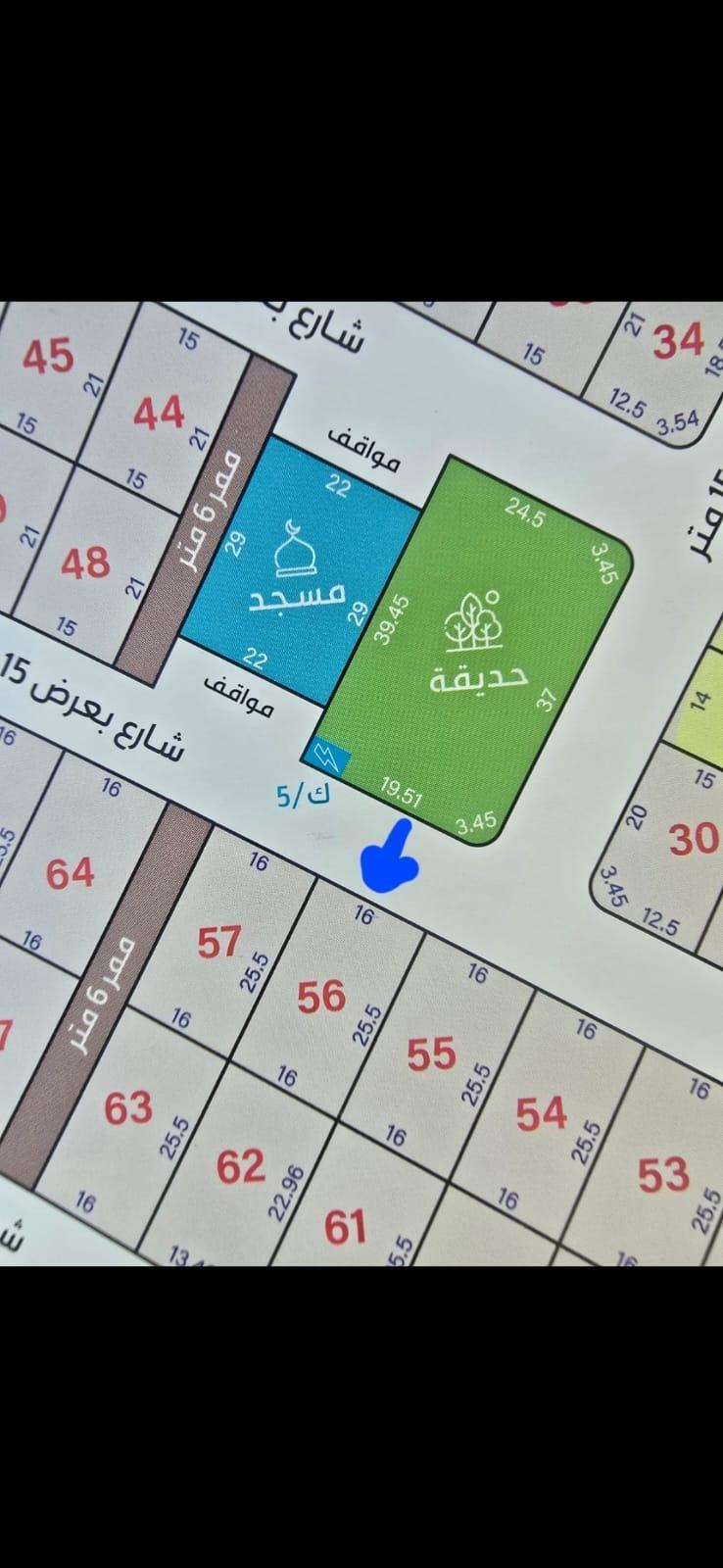 الأرض على شارع عرض 15 م