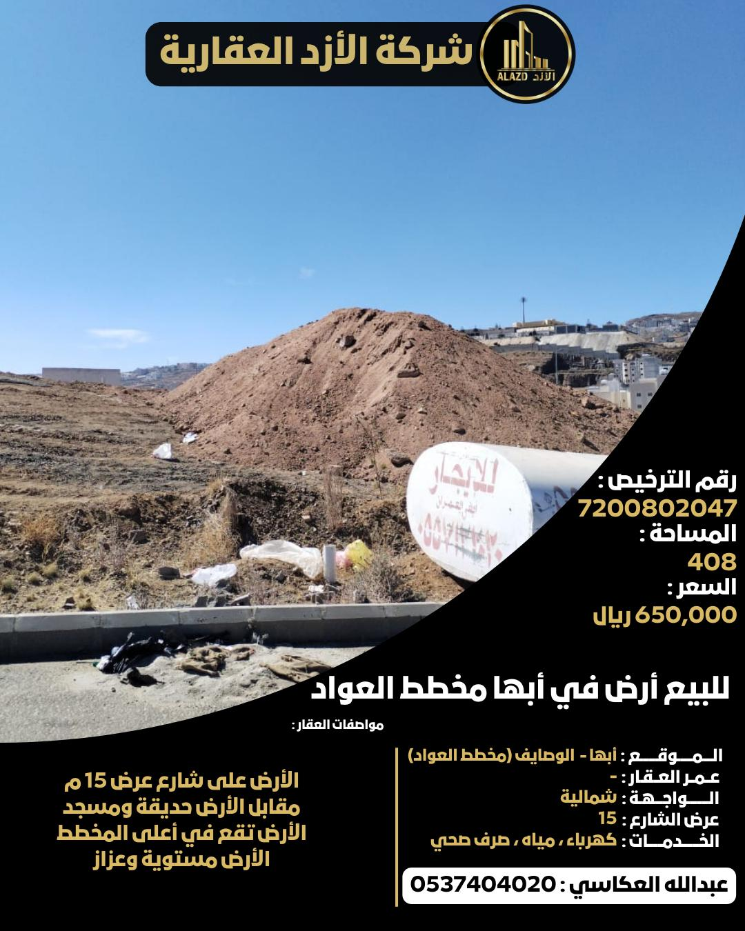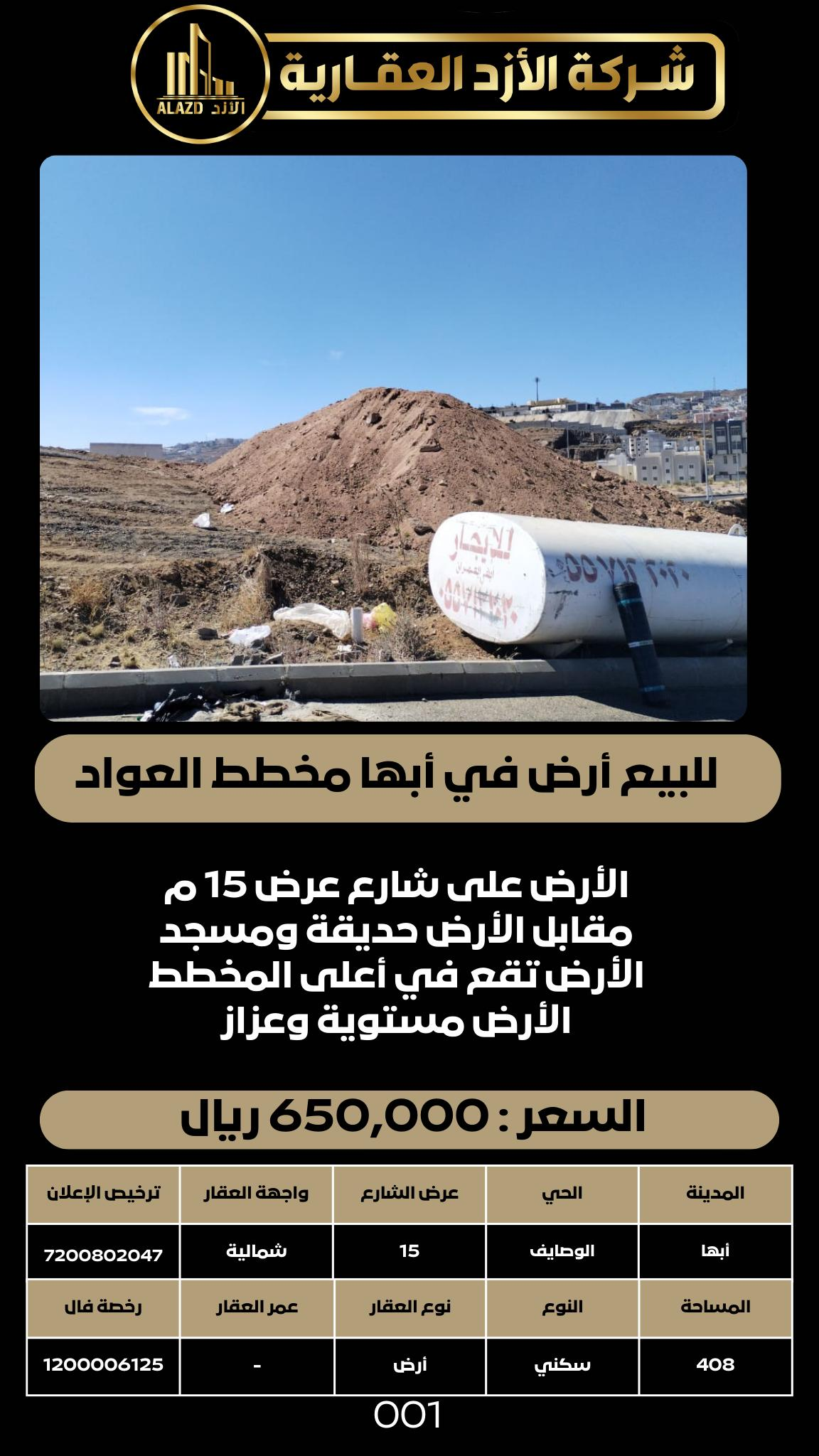للبيع أرض في أبها مخطط العواد