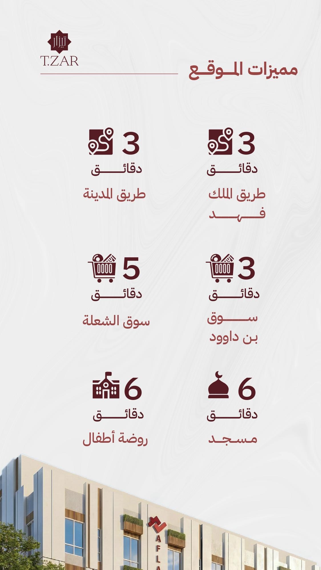 طريق الملك فهـد / طريق المديـنــه / سـوق بن داوود / سـوق الشعلة / مسجــد / روضة أطفال