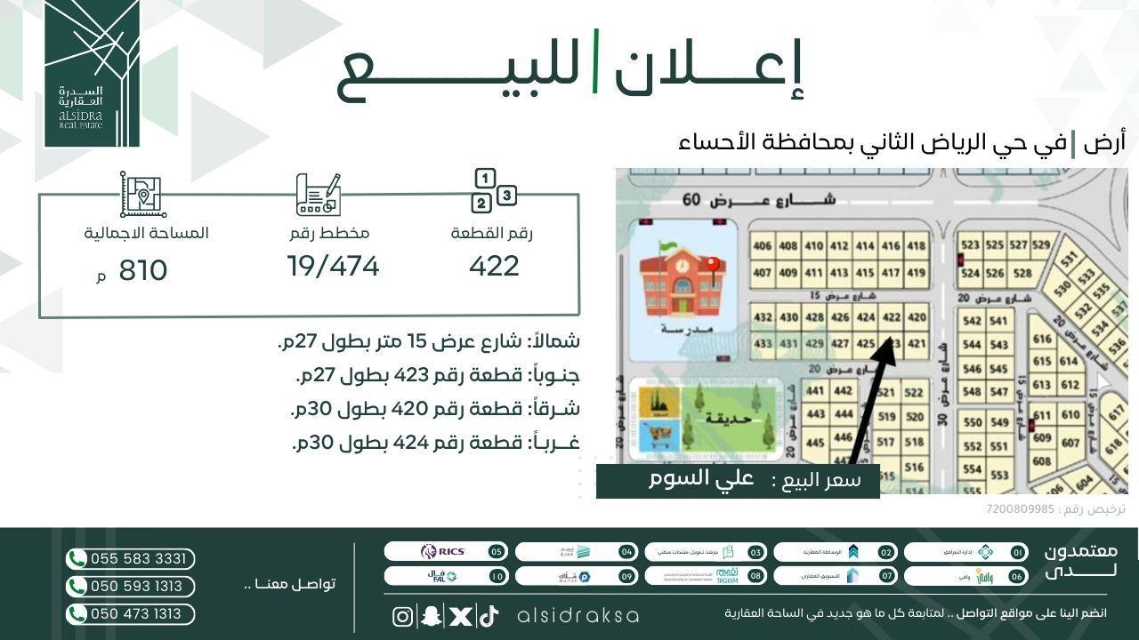 🛑للبيع ارض في حي الرياض الثاني بالاحساء