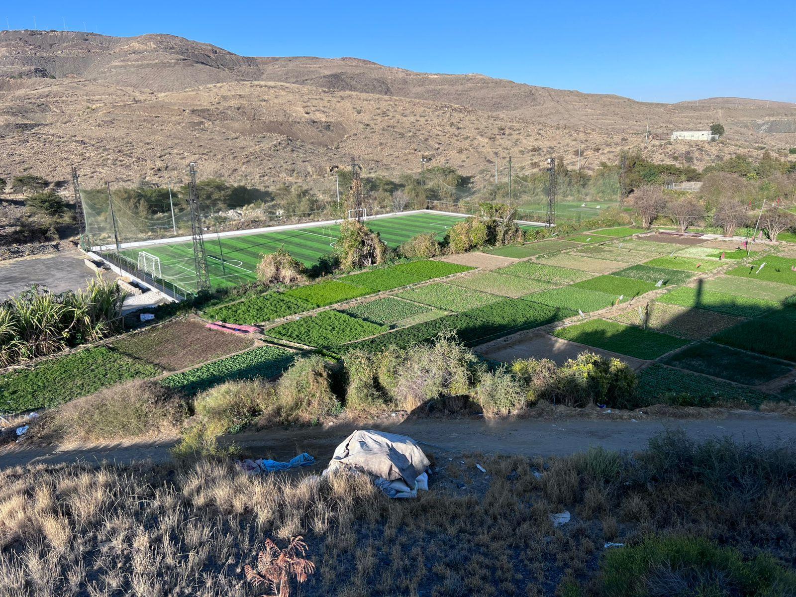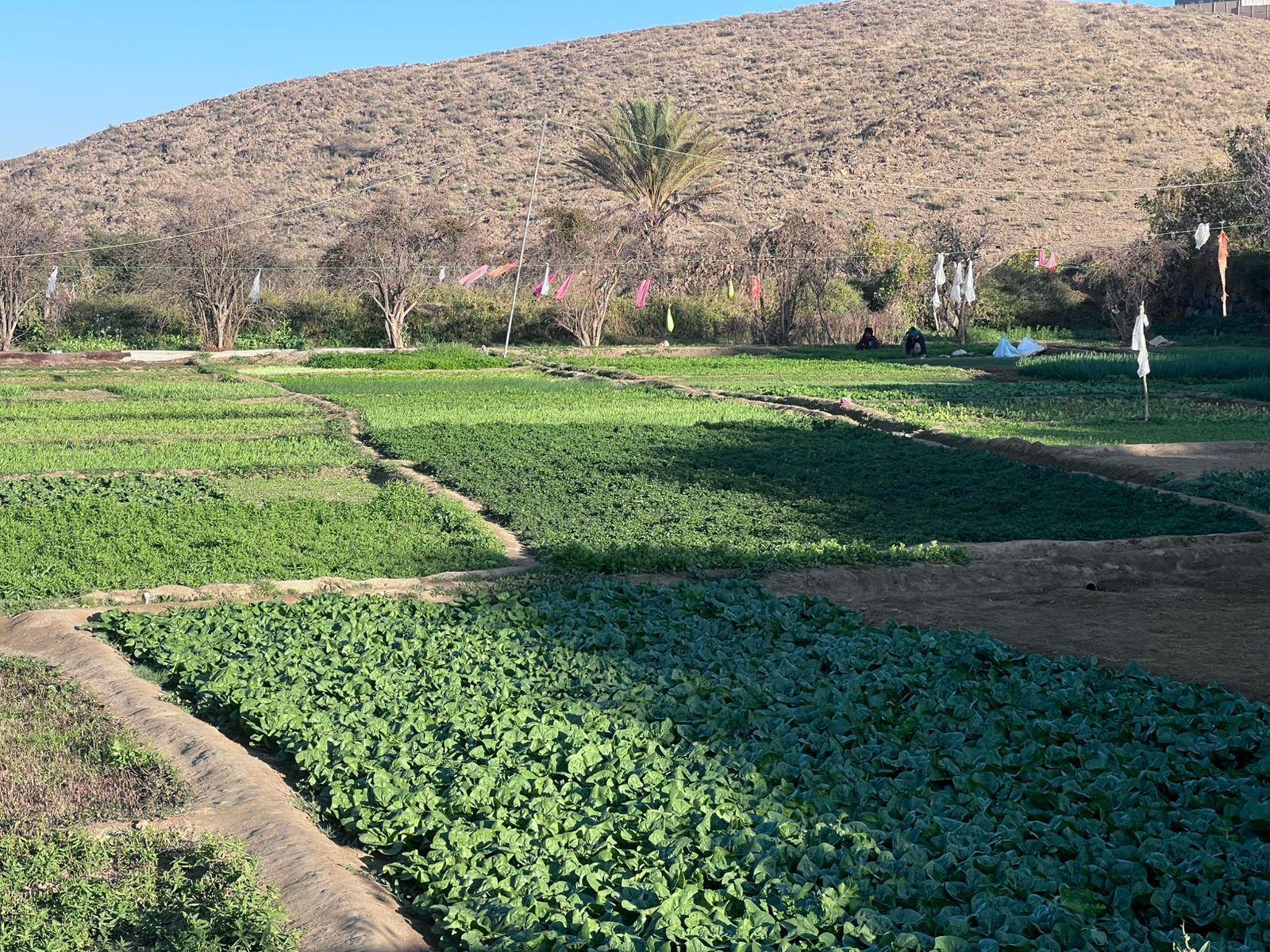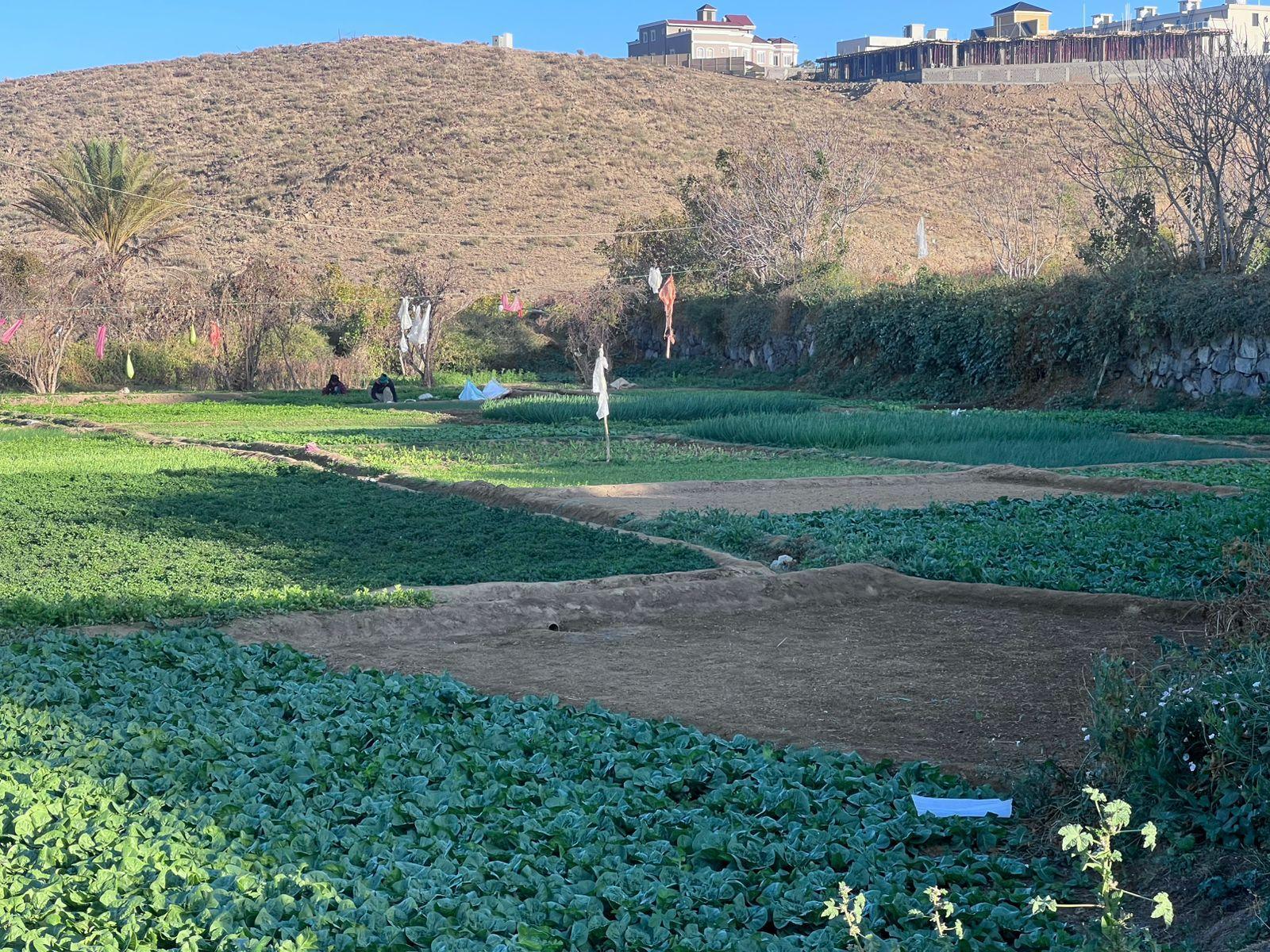 تحتوي على : بئر وفيرة المياه ومساحات واسعة مزروعة بالخضروات ومتنوعه وبها ملعب كرة قدم كبير وغرف عمال ولها عداد كهرباء خاص
