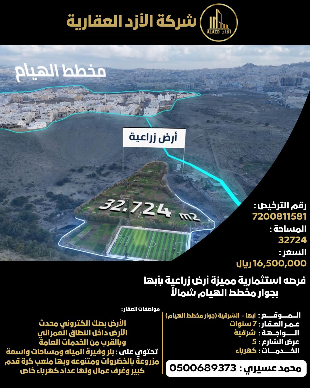 فرصه استثمارية مميزة أرض زراعية بأبها بجوار مخطط الهيام شمالاً