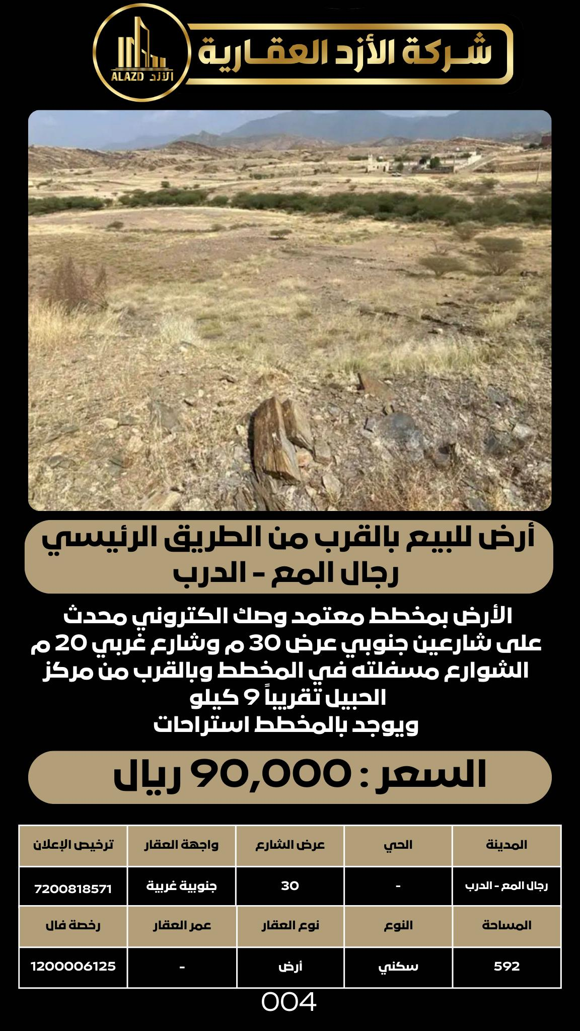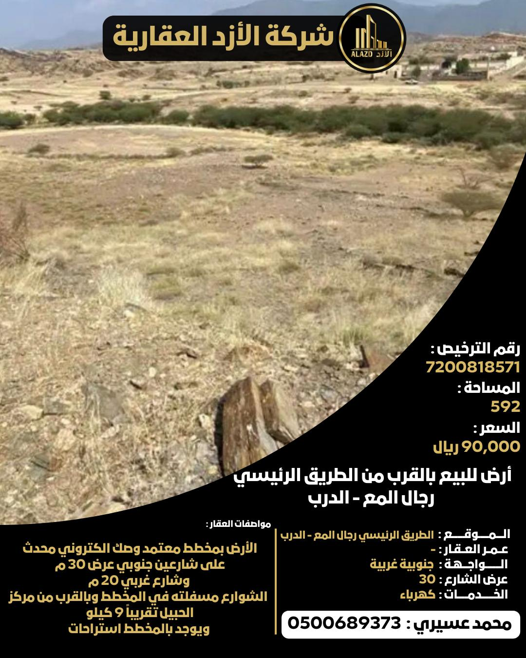 أرض للبيع بالقرب من الطريق الرئيسي رجال المع الدرب