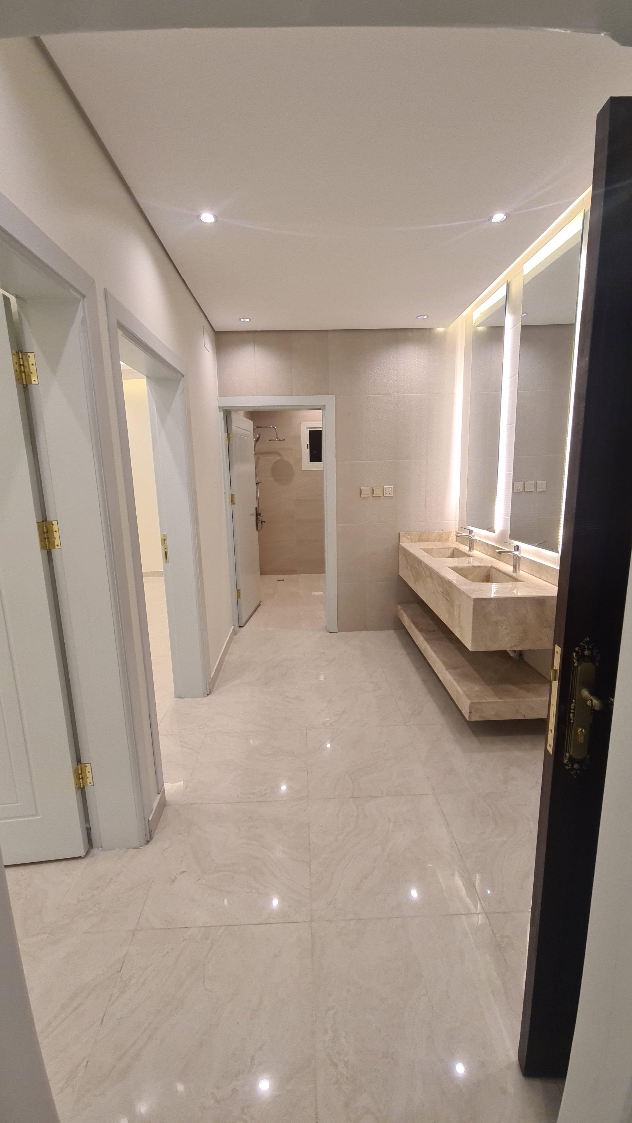 كل شقة مدخلين و5غرف واسعه و3 دورات مياه وصالة ومطبخ وغرفة خادمة وغسيل