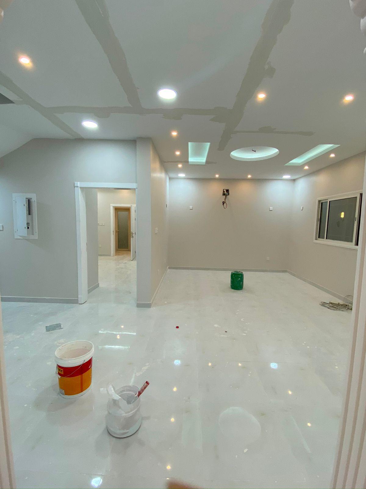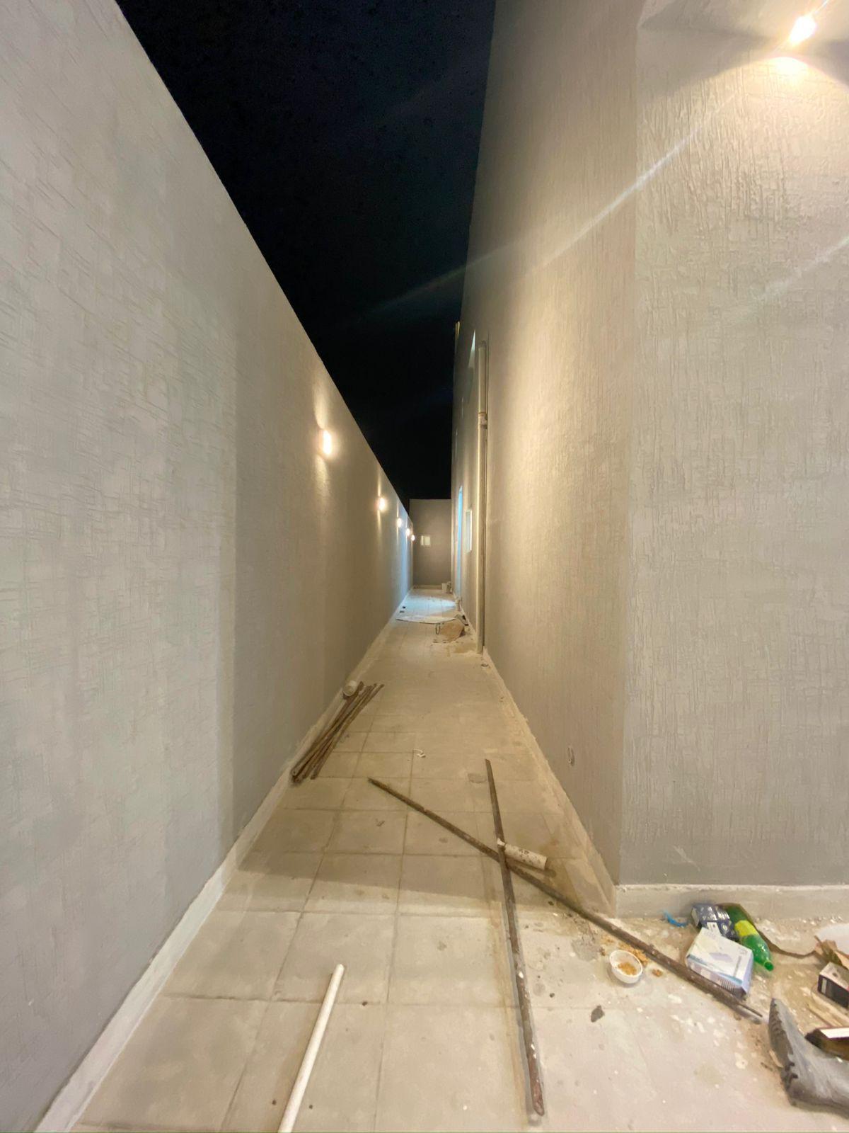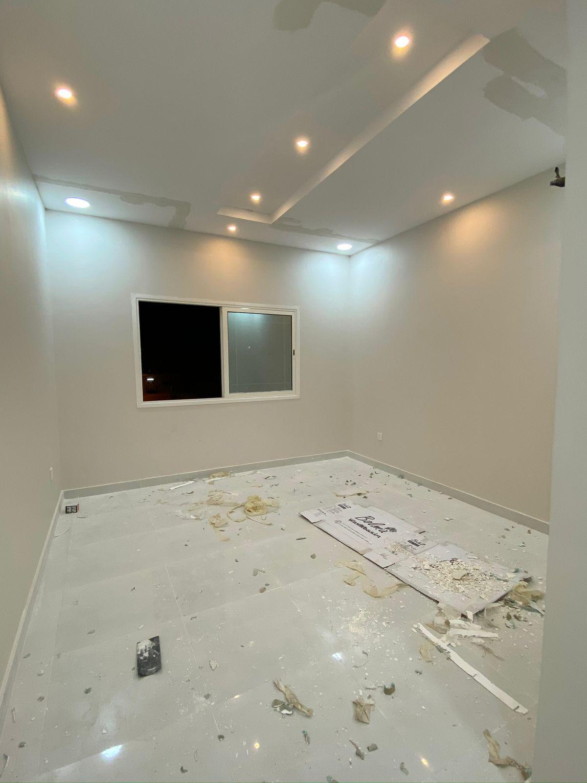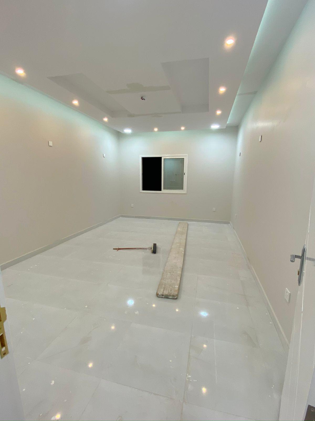 الدور الأول: 3 غرف نوم ماستر + غرفة نوم وصالة بحمام مشترك