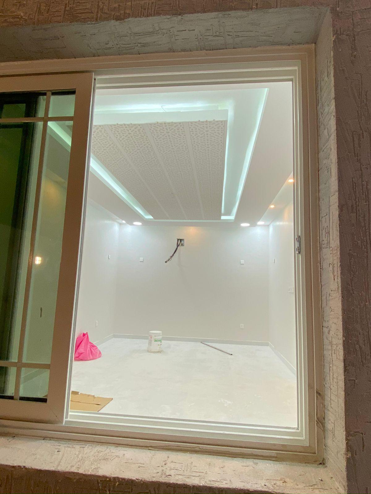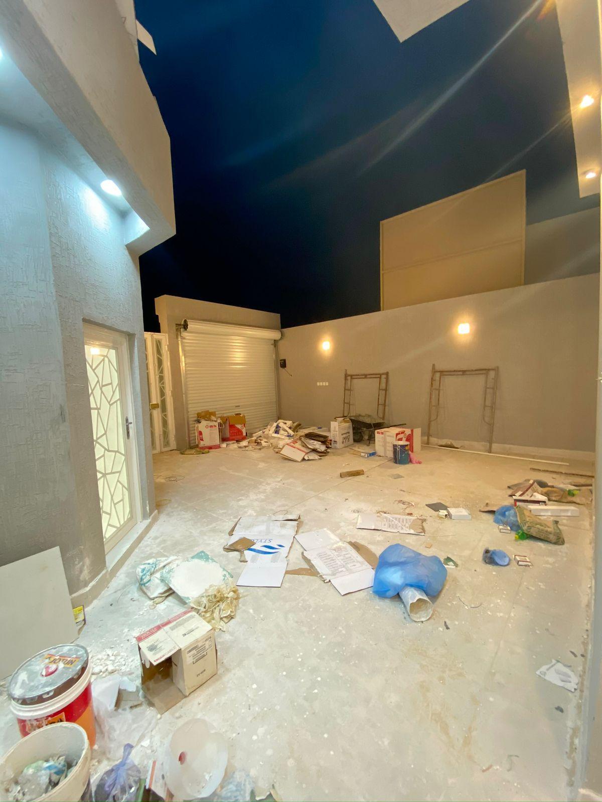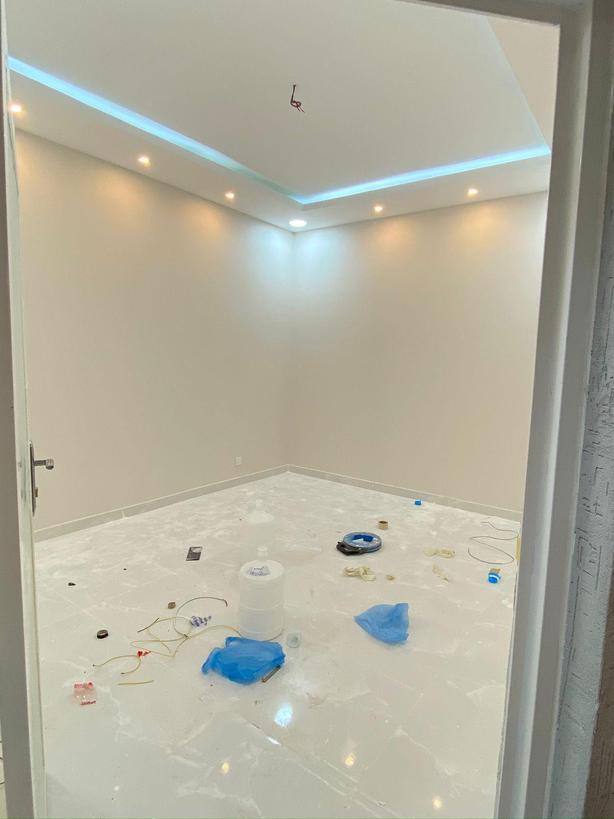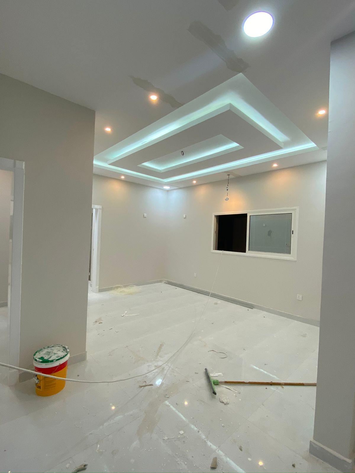 الدور الأول: 3 غرف نوم ماستر + غرفة نوم وصالة بحمام مشترك
