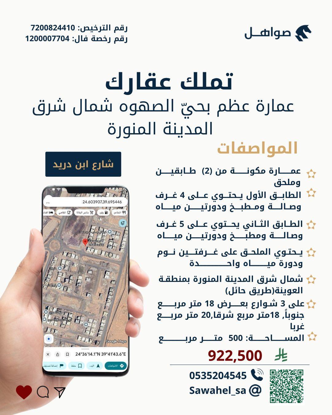 عمارة عظم للبيع بحيّ الصهوه شمال شرق المدينة