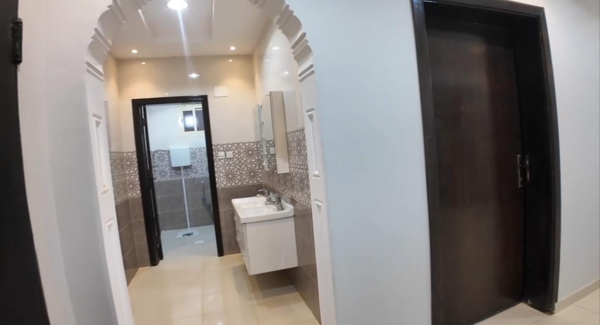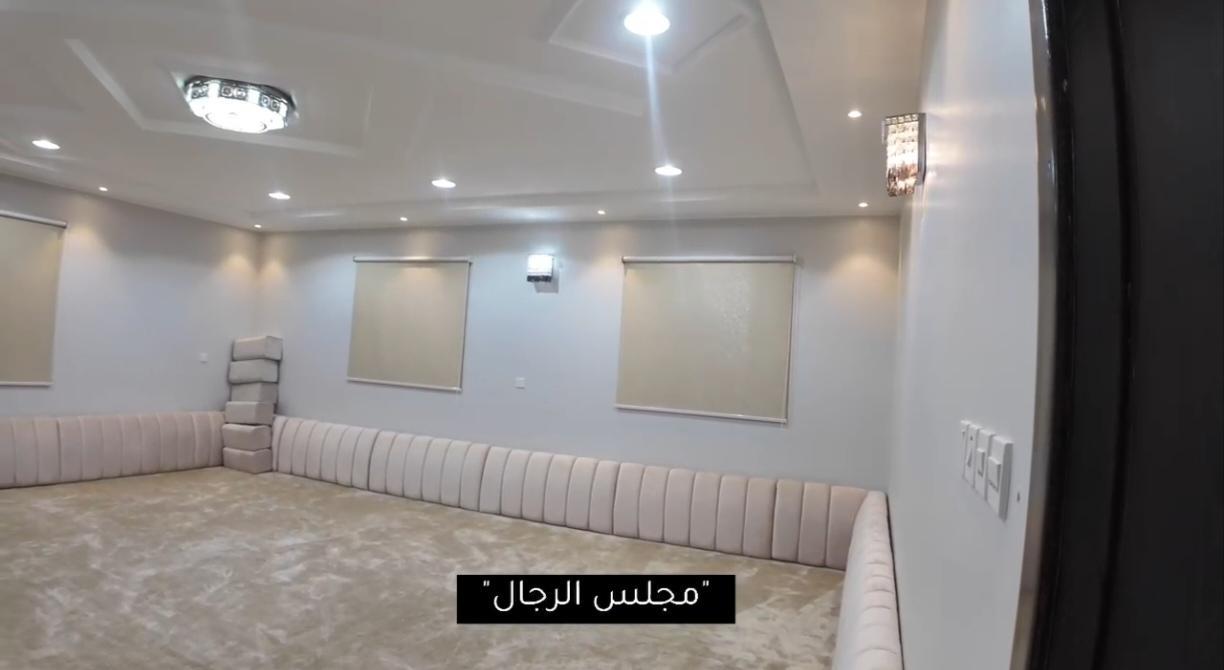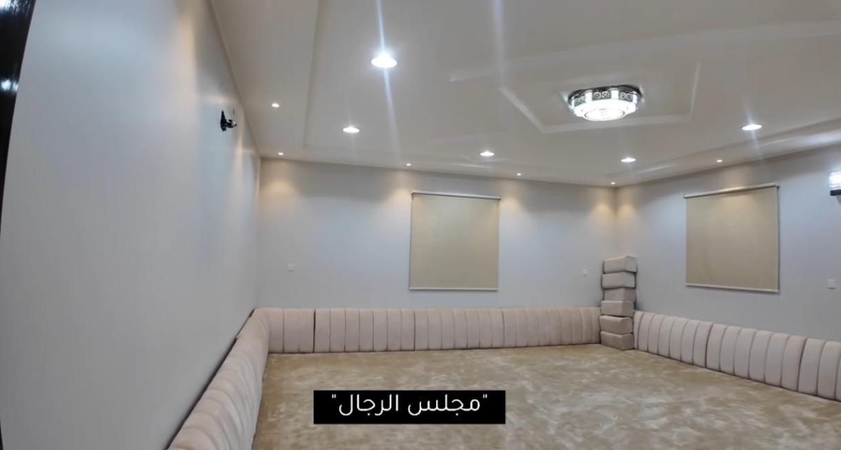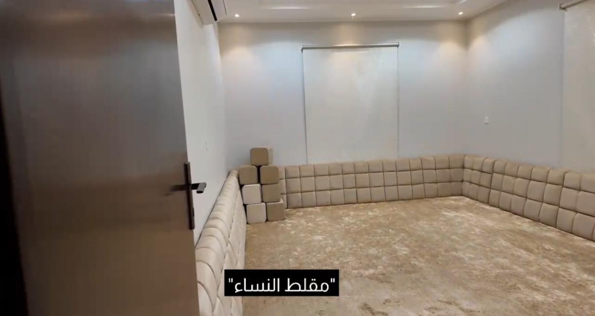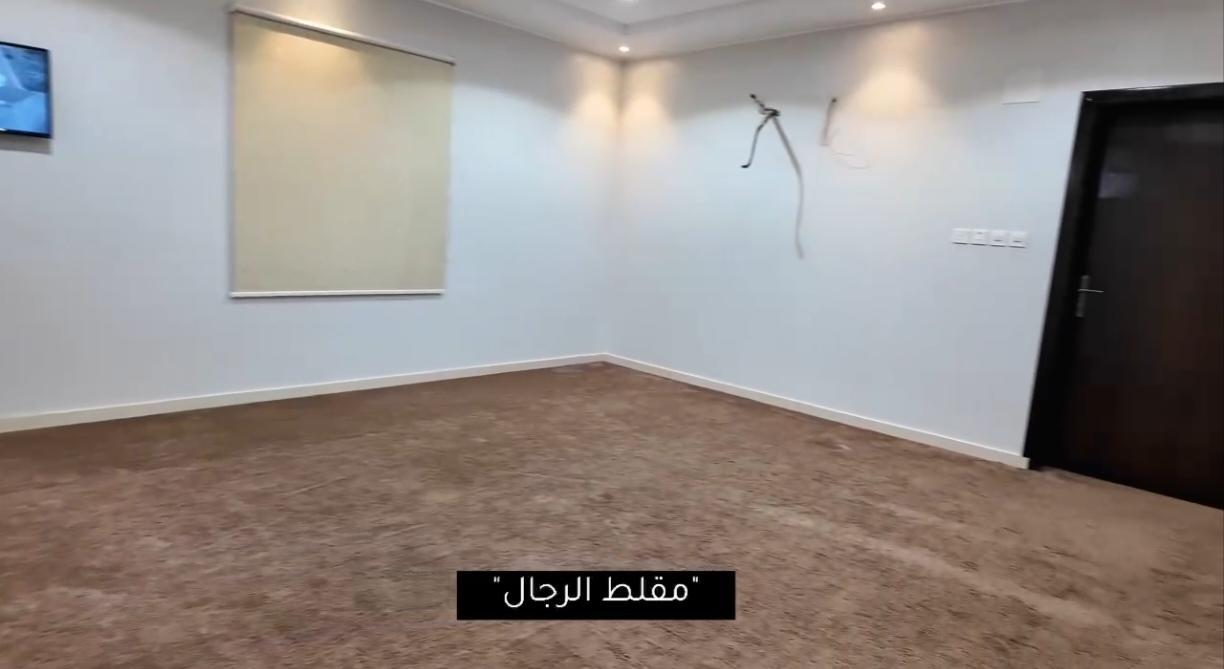 🟠 الدور الأرضي غرفتين نوم بحمامها وغرفة غسيل + وصاله حريم 1 ومجلس حريم1 بحمامهم ومستودع + مطبخ ومقلط رجال ومجلس رجال بحمامه