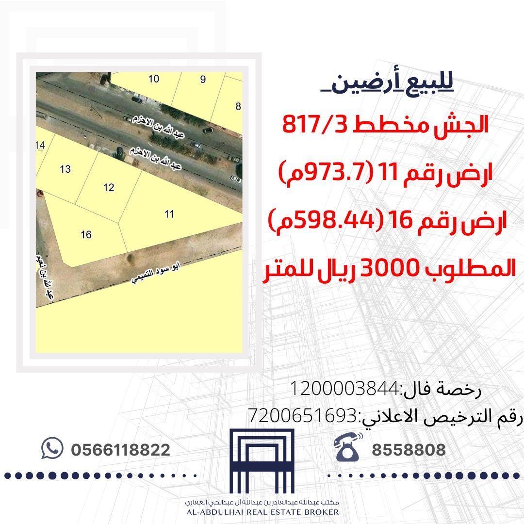 ارض رقم ١٦ المساحة (٥٩٨.٤٤متر)