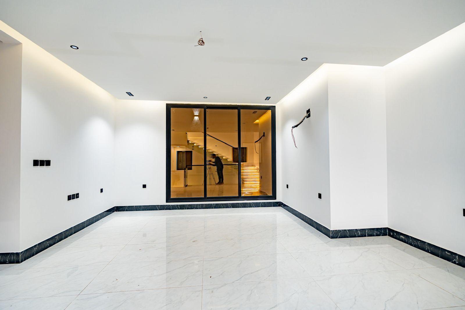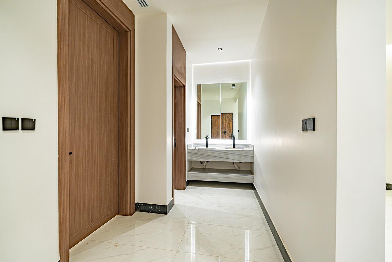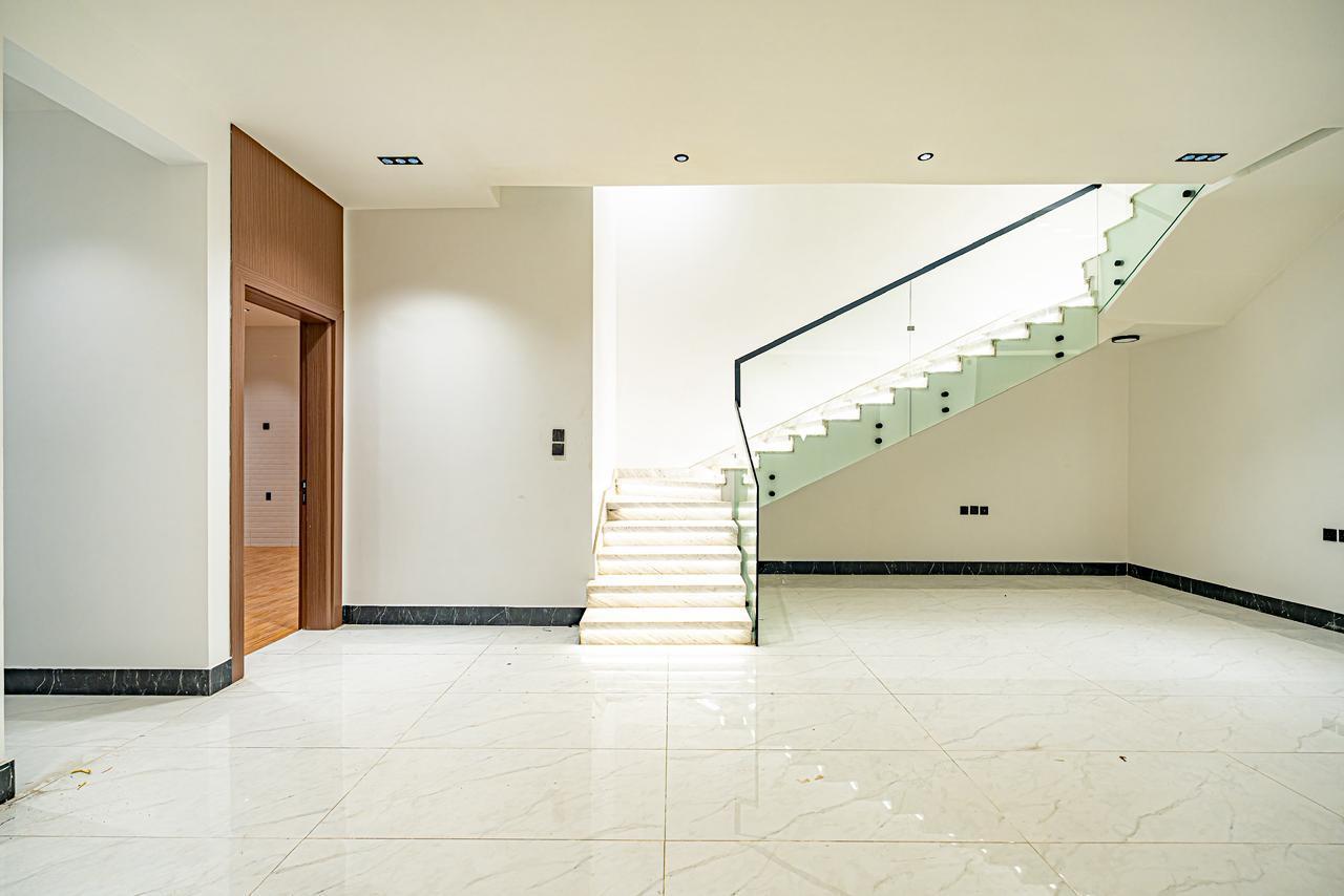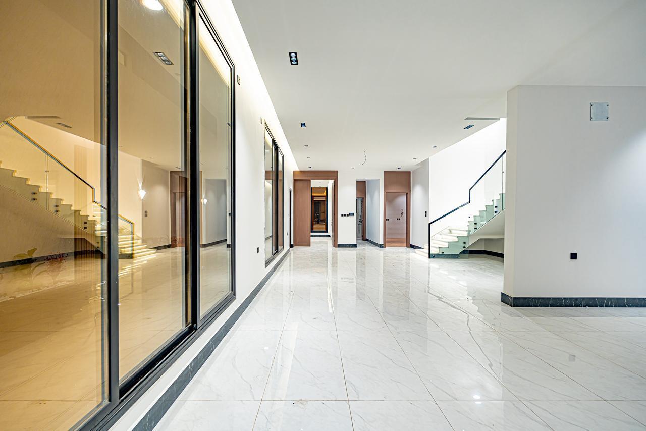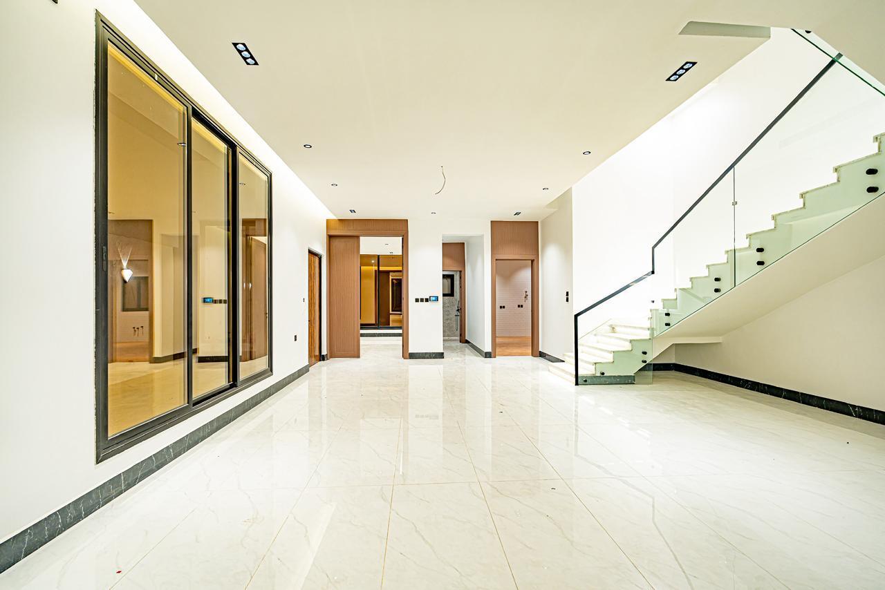 مصعد مؤسس، تكييف مركزي للدور الأرضي وغرفة النوم الرئيسية، سخان مركزي، رخام وحجر طبيعي، جبس بورد مقاوم، دهانات جوتن، سباكة تحويل + GM، خلاطات Grohe، كيابل الرياض، عوازل حرارية ومائية متكاملة (فوم 10 سم + طابوق أبيض).